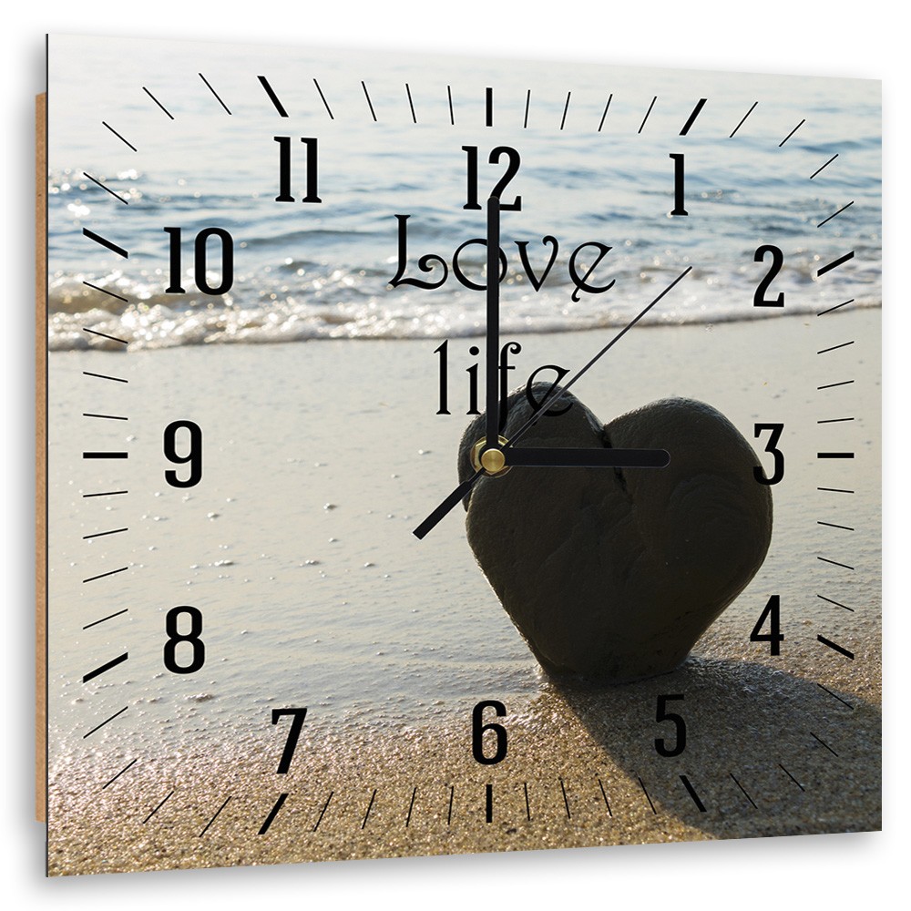 Productinformatie "Wandklok met bedrukt papier en hdf frame hart op het strand"