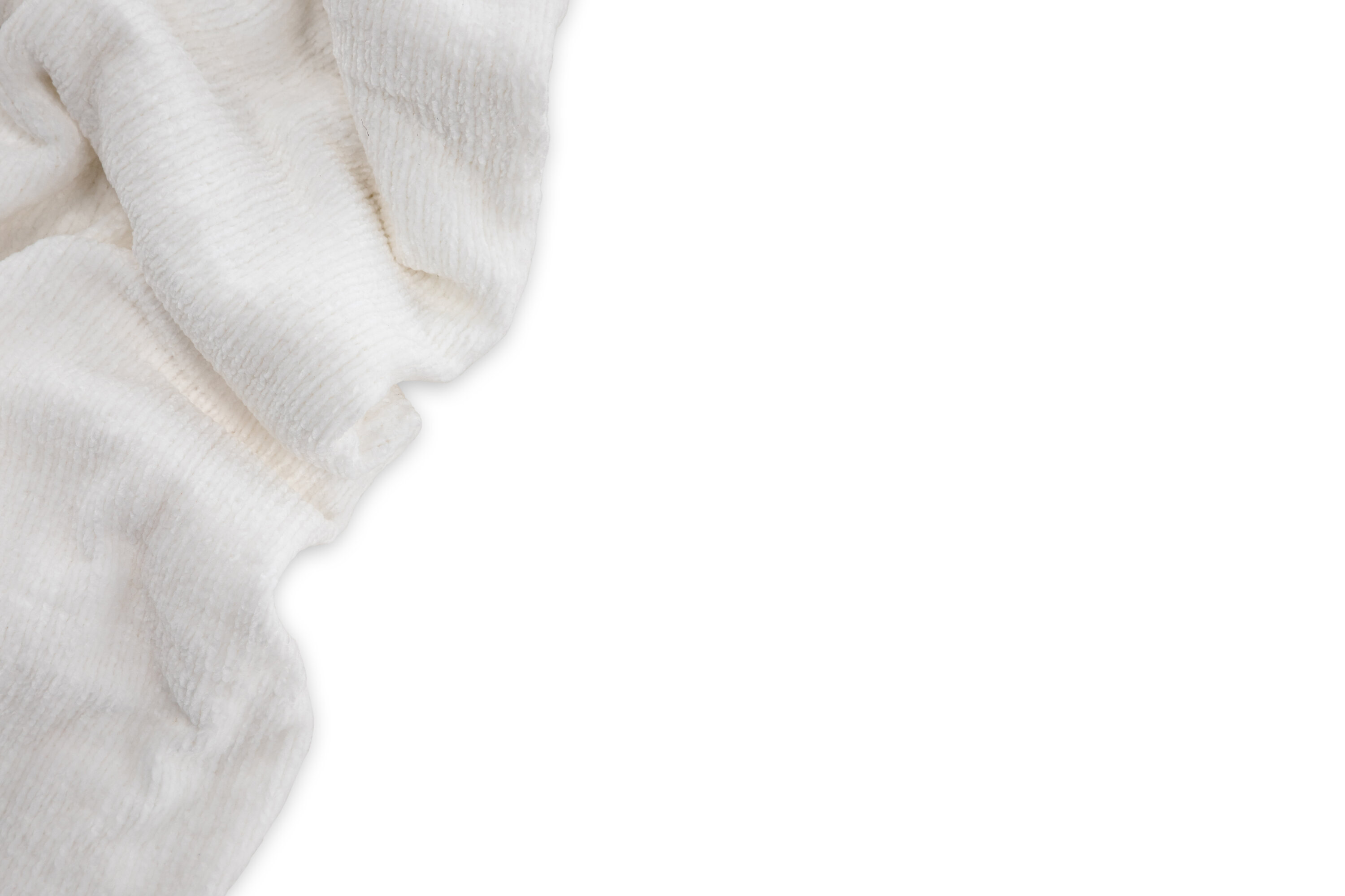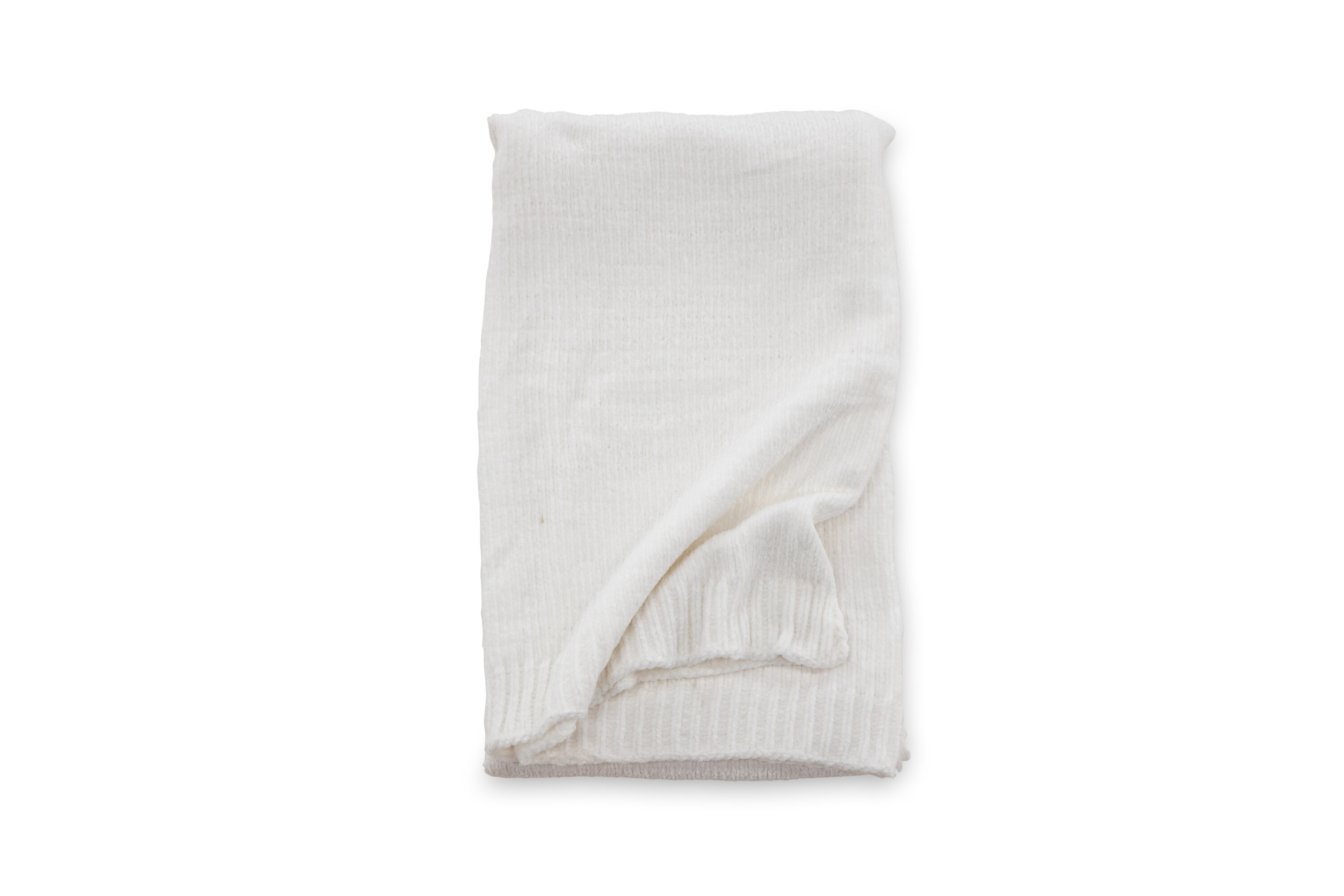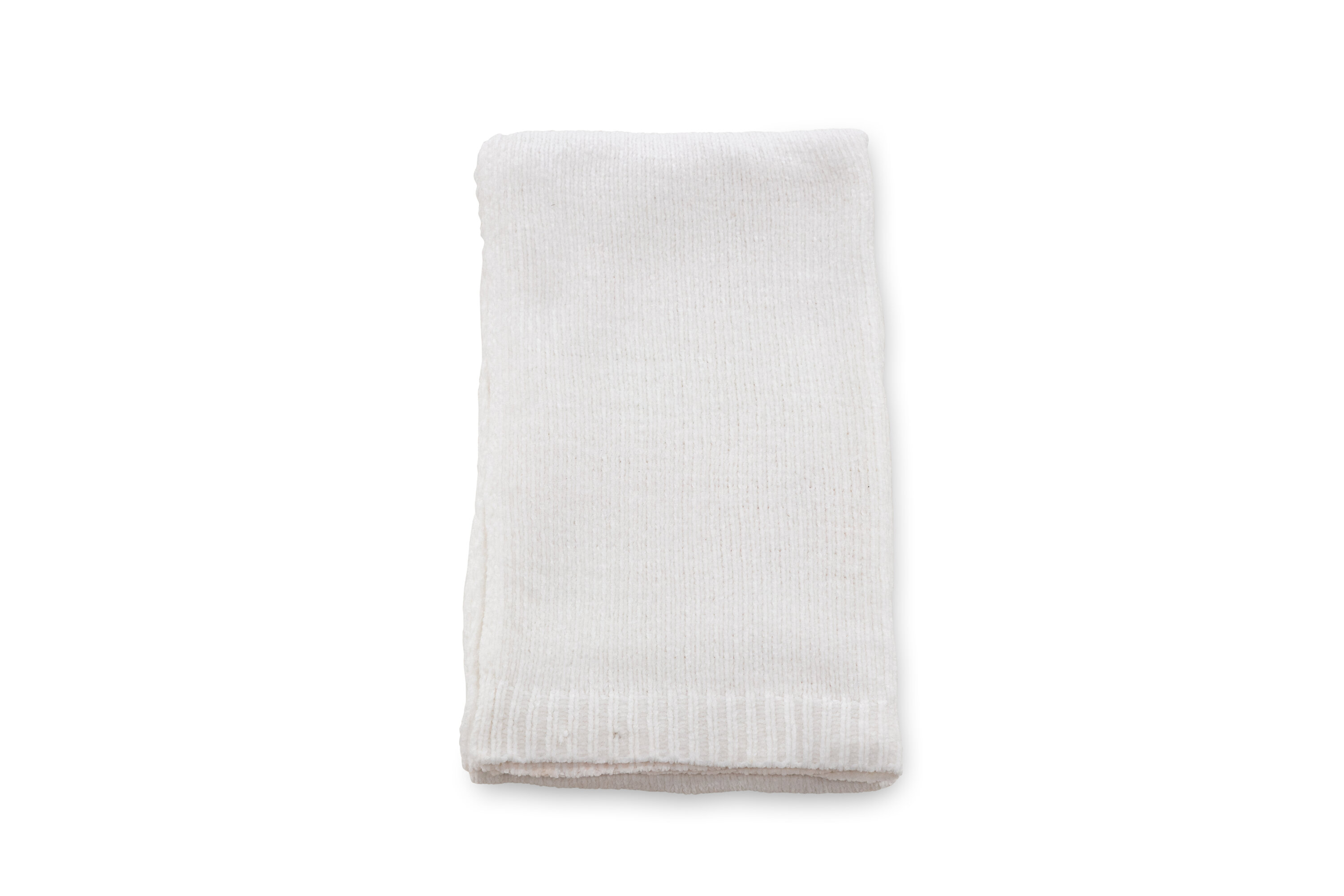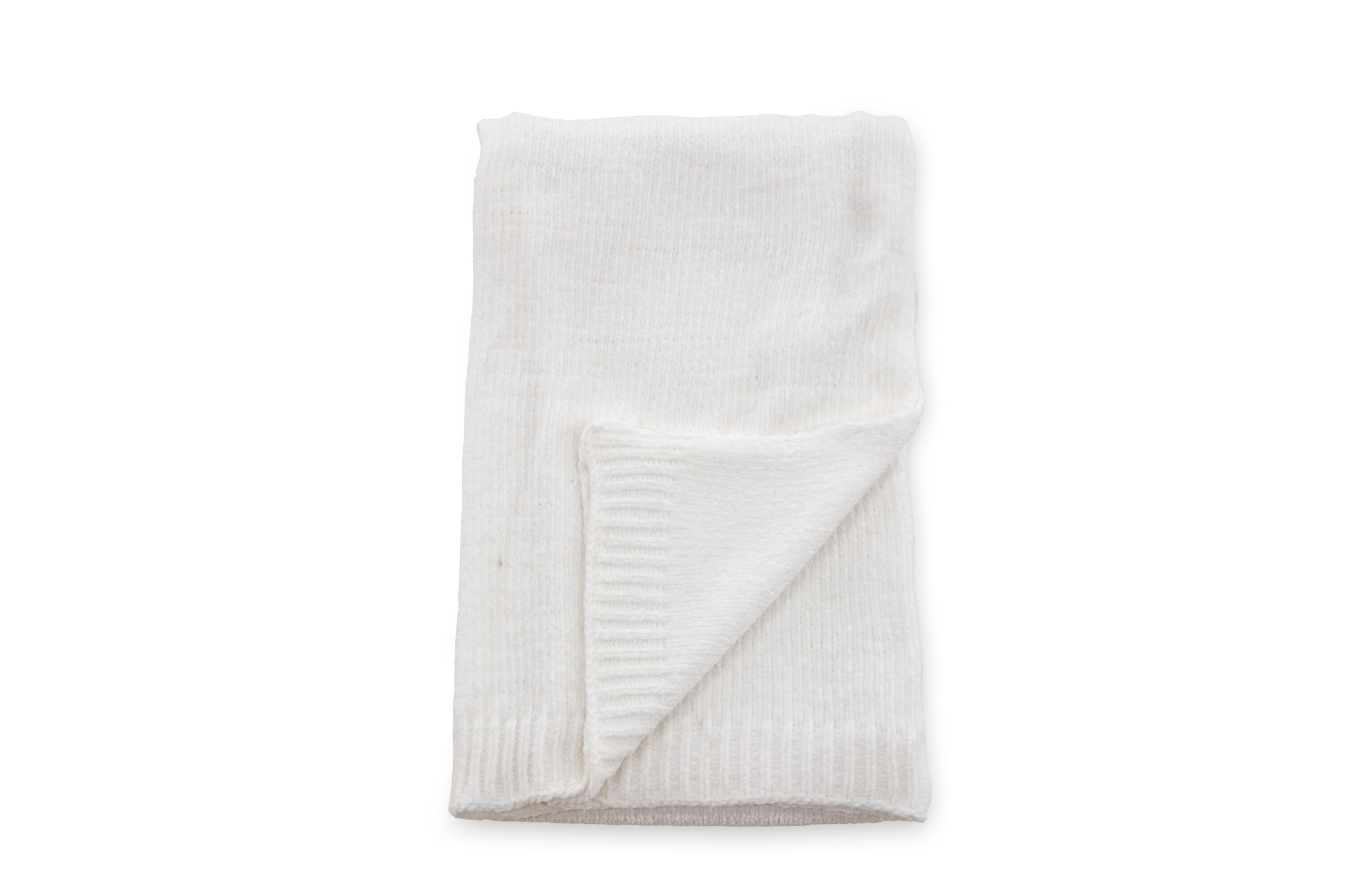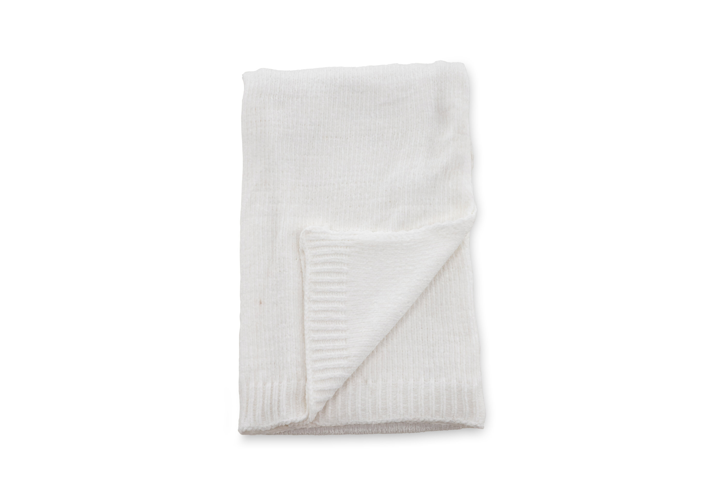 Wit plaid in glanzend chenille en polyester materiaal. Knus plaid in maat 130x170 cm. Onderhoudsadvies: Machinewas 30 graden, hangend droog.