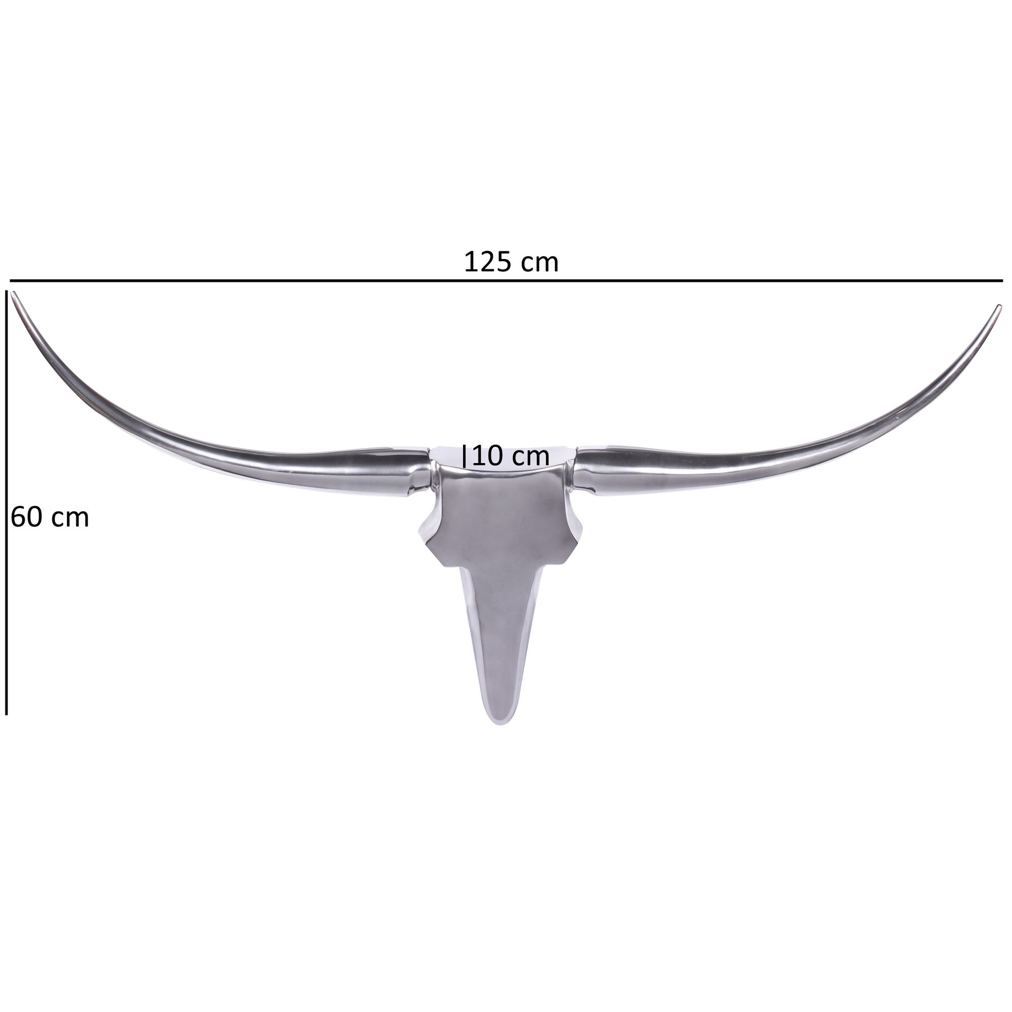 Productinformatie "Stier Gewei Aluminium Zilver | 125x60x10 cm | Moderne Wanddecoratie"