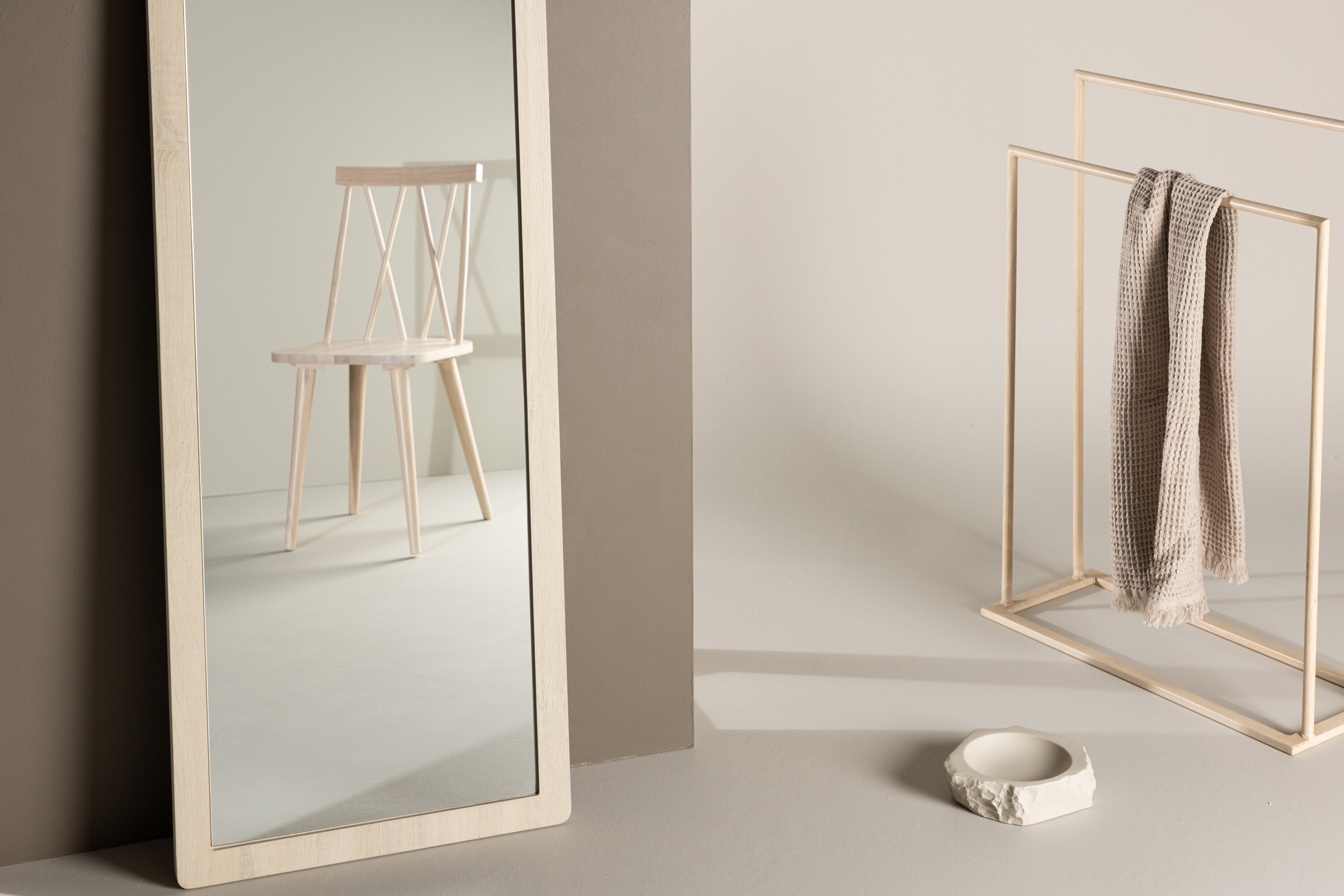 Het witgekalkte MDF-frame geeft Memphis een tijdloze en schone esthetiek, waardoor het veelzijdig is en geschikt voor verschillende interieurstijlen. De afgeronde vorm aan de bovenkant geeft de spiegel een bijzonder karakter en maakt het een mooie toevoeging aan je kamer.