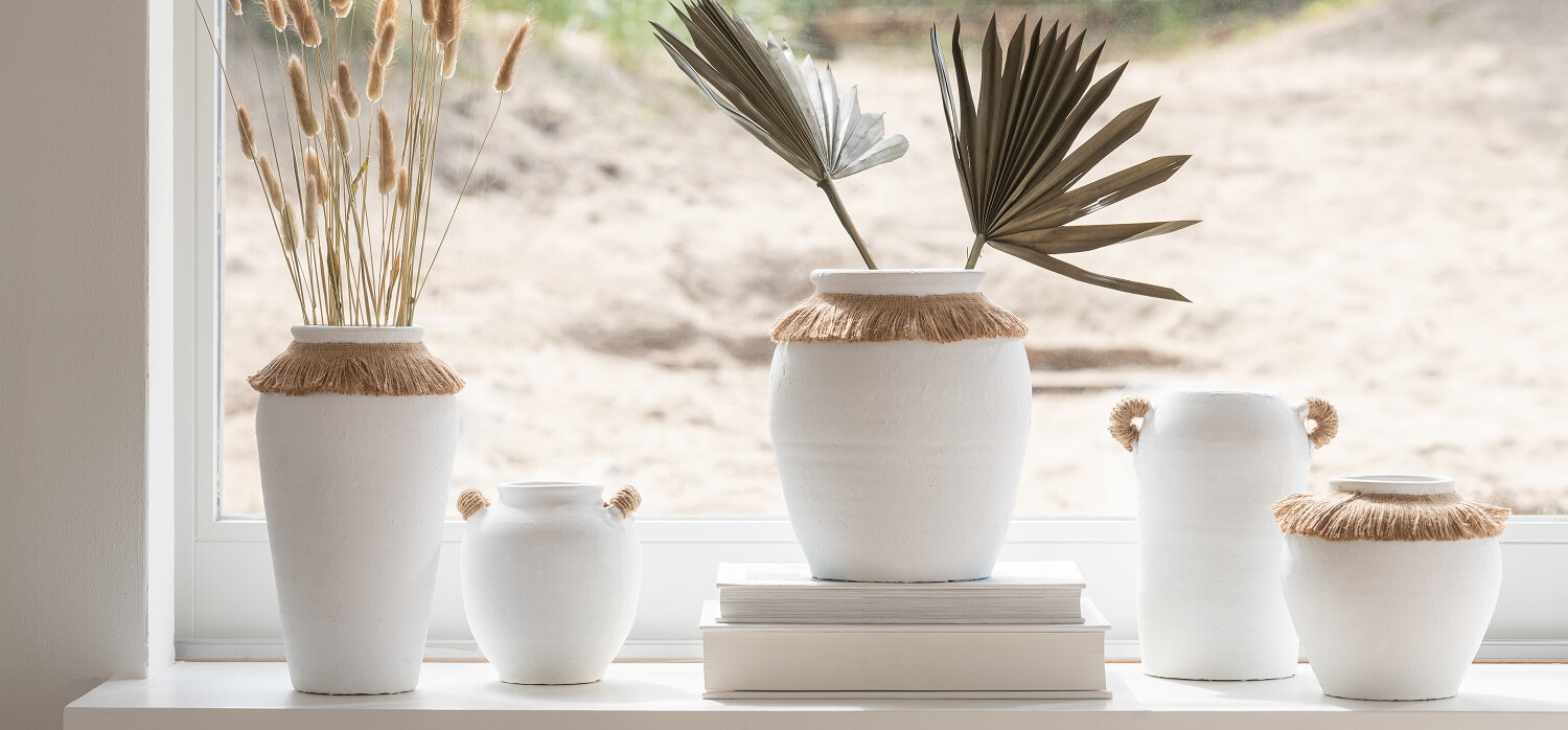 De juiste vaas of bloempot geeft een ruimte textuur, vorm en persoonlijkheid. Combineer ze met onze levensechte kunstplanten en -bloemen voor een frisse, natuurlijke uitstraling – zonder water geven. Of je nu houdt van opvallende stukken of subtiele, tijdloze ontwerpen, onze collectie brengt moeiteloos groen en stijl in elke ruimte.