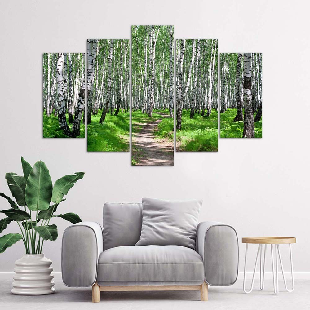 Productinformatie "Frame bestaande uit vijf panelen gedrukt op papier met hdf berkenhouten frame"