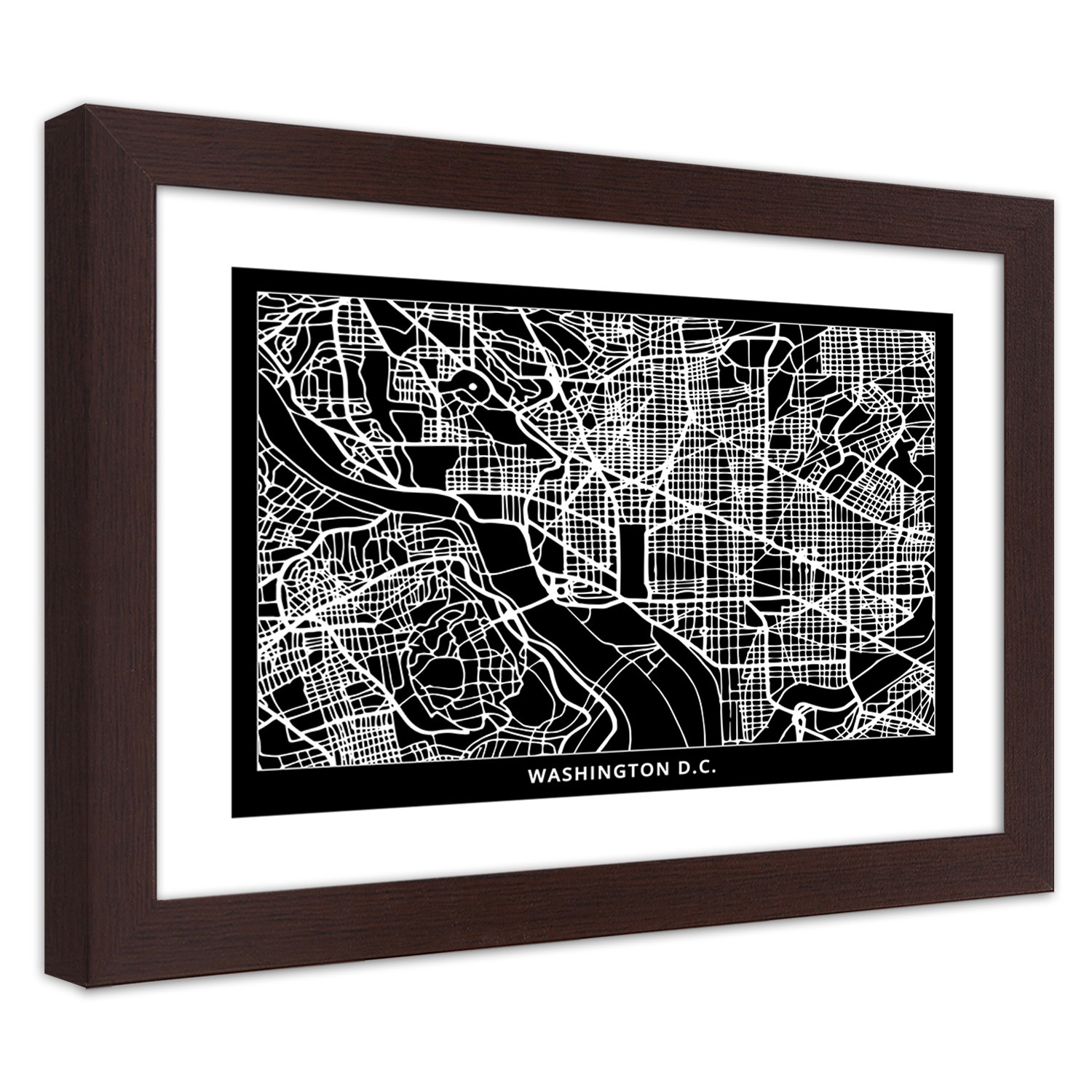Productinformatie "Frame van de stad washington gedrukt op satijn mdf-papier met zwart-witte afwerking"