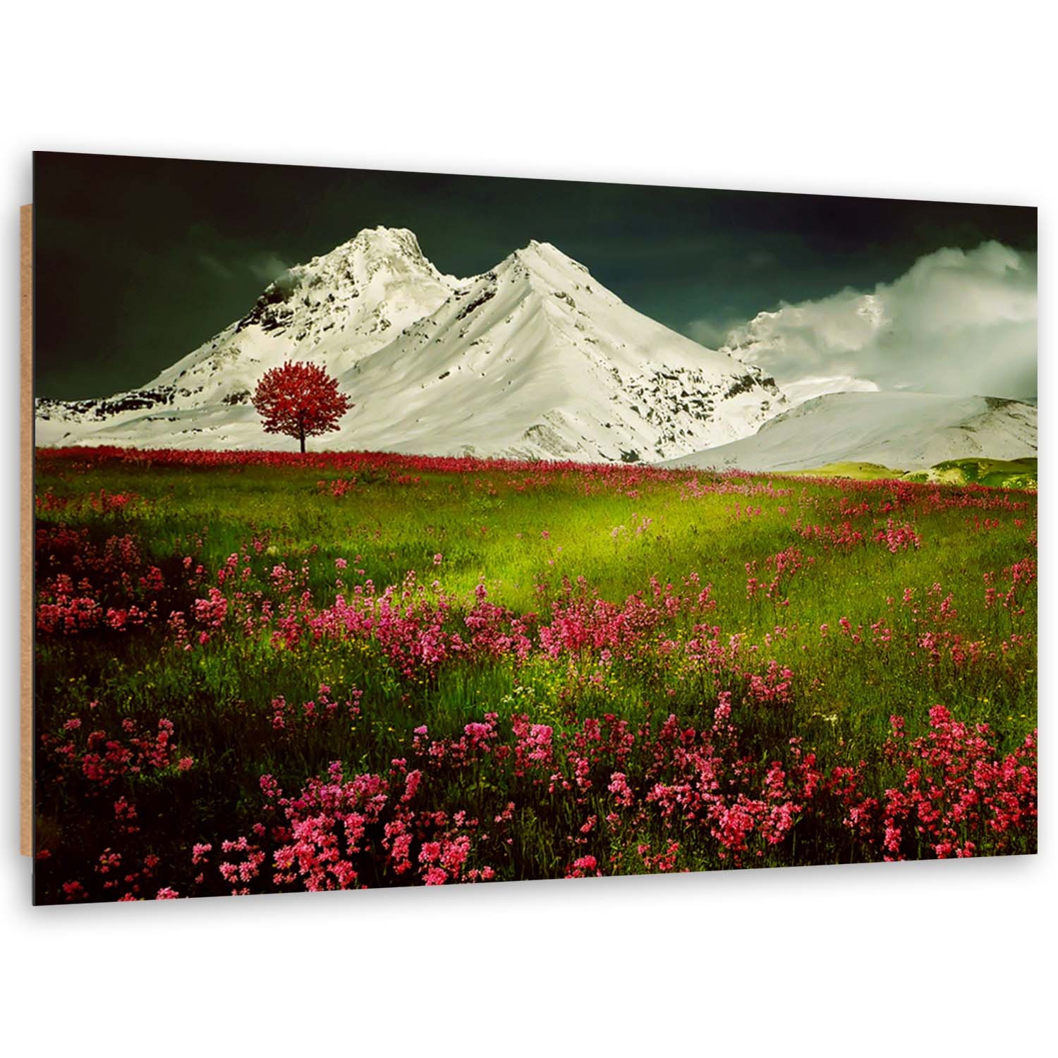 Productinformatie "Horizontaal decoratief frame in hdf gedrukt op papier besneeuwde bergen met kleurrijke weide"