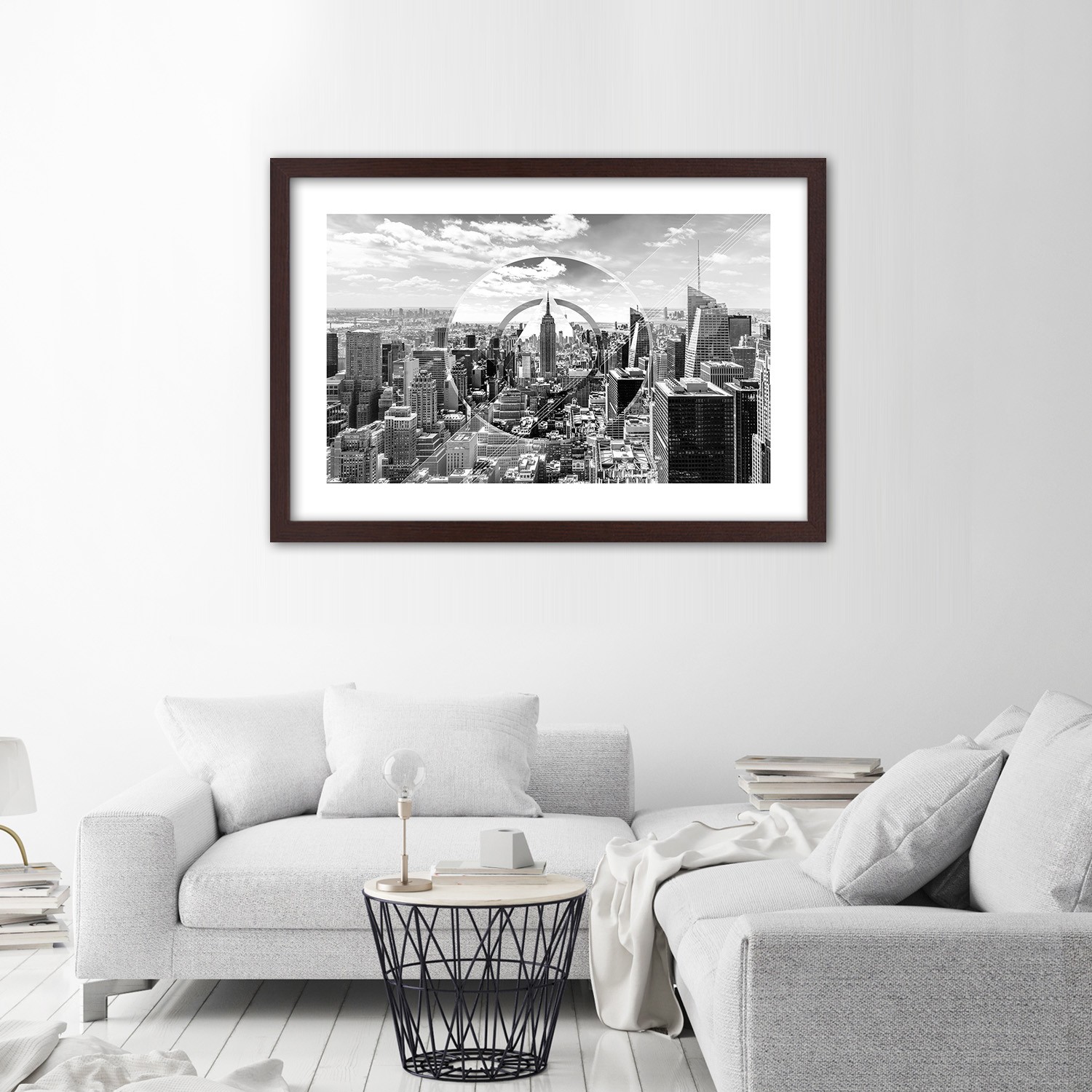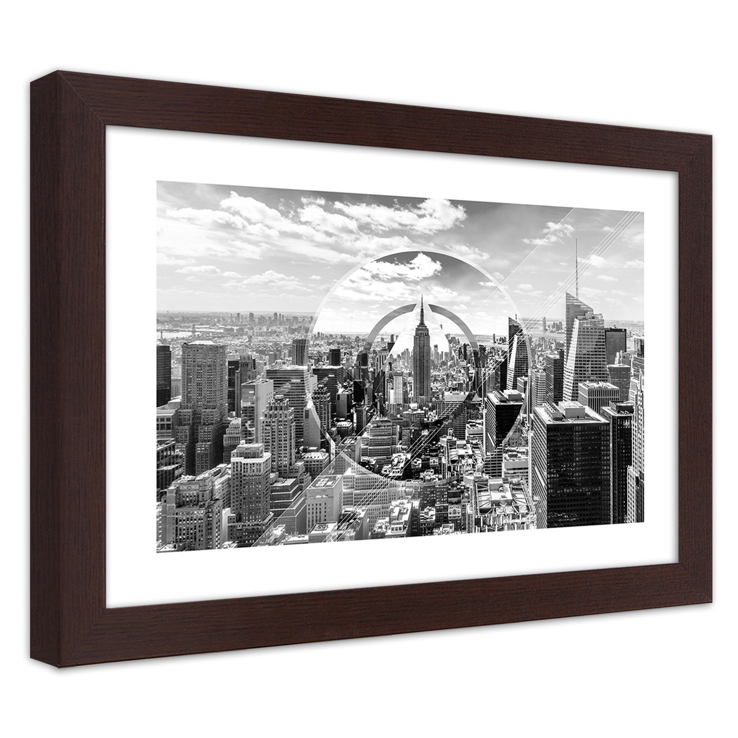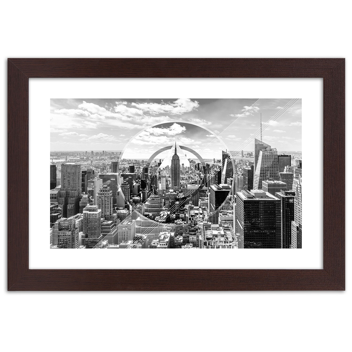 Productinformatie "Mdf wolkenkrabber frame gedrukt op papier met zwart-witte afwerking"