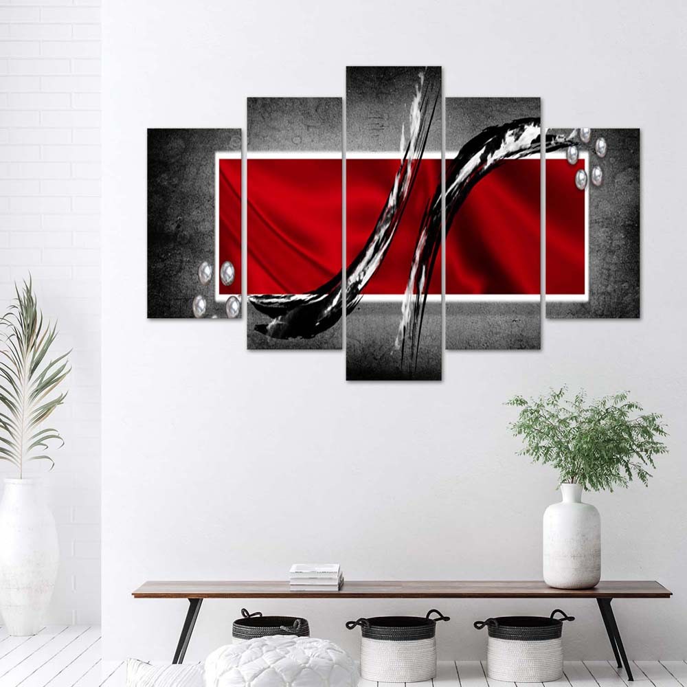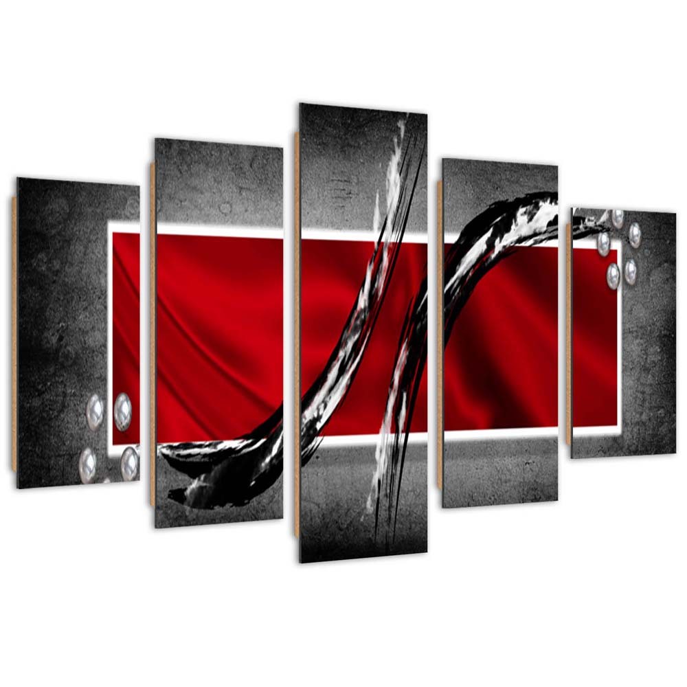Productinformatie "Set van vijf frames gemaakt van hdf rechthoekpatroon in rode kleur"