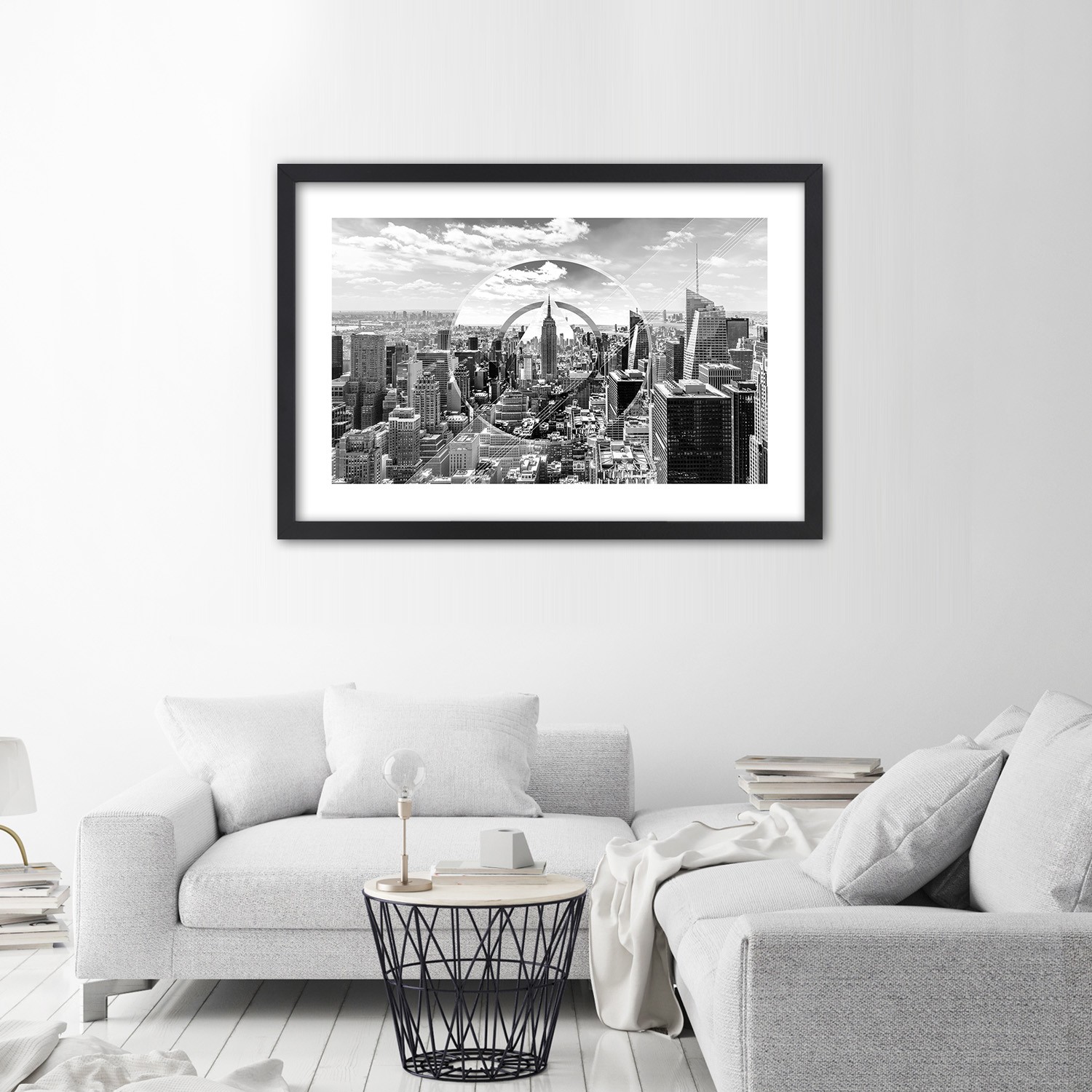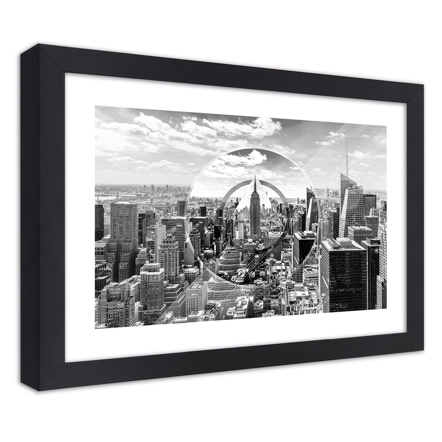 Zwart gefineerd mdf frame met een poster van wolkenkrabbers