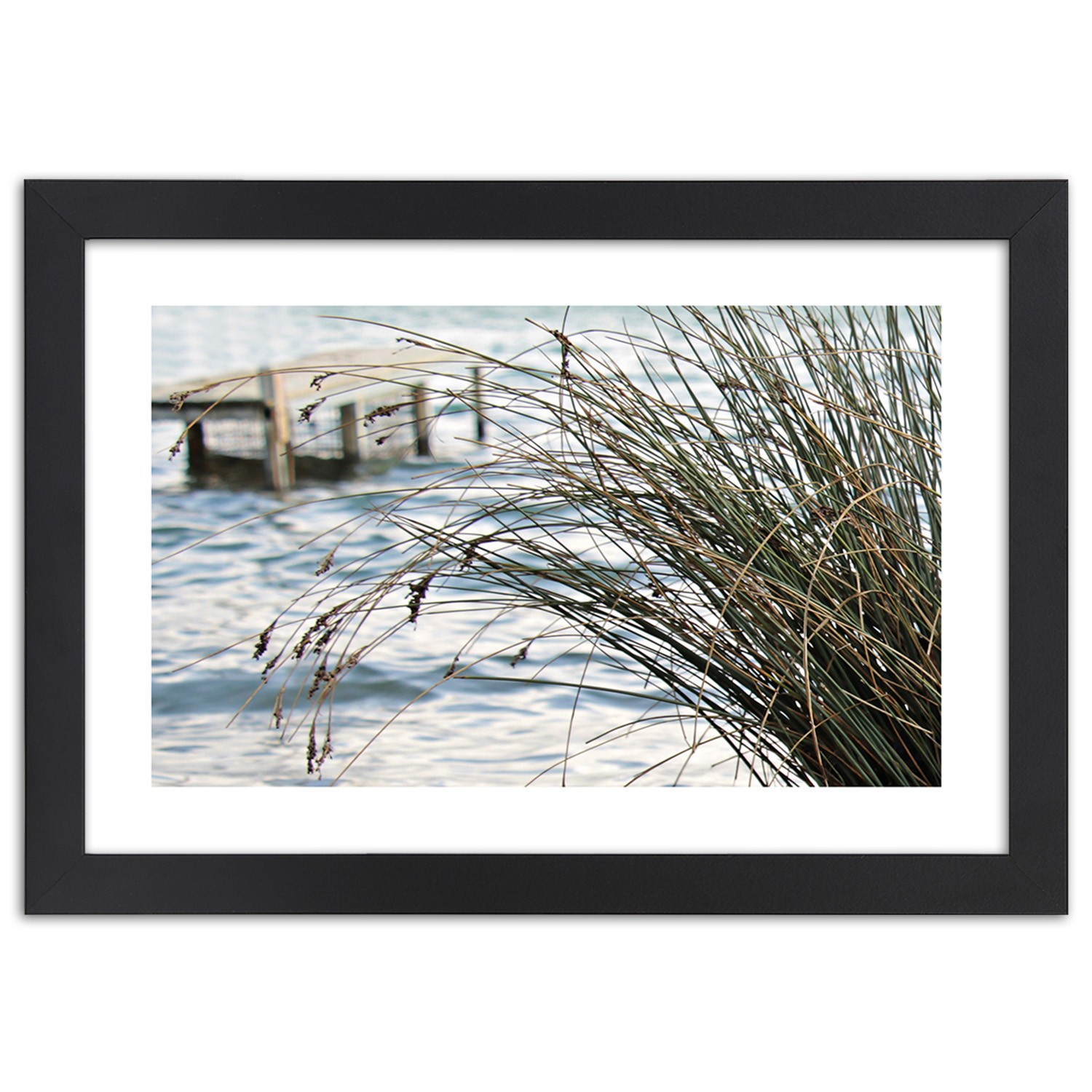 Productinformatie "Zwarte mdf gefineerde lijst met decoratieve poster ponton op zee"