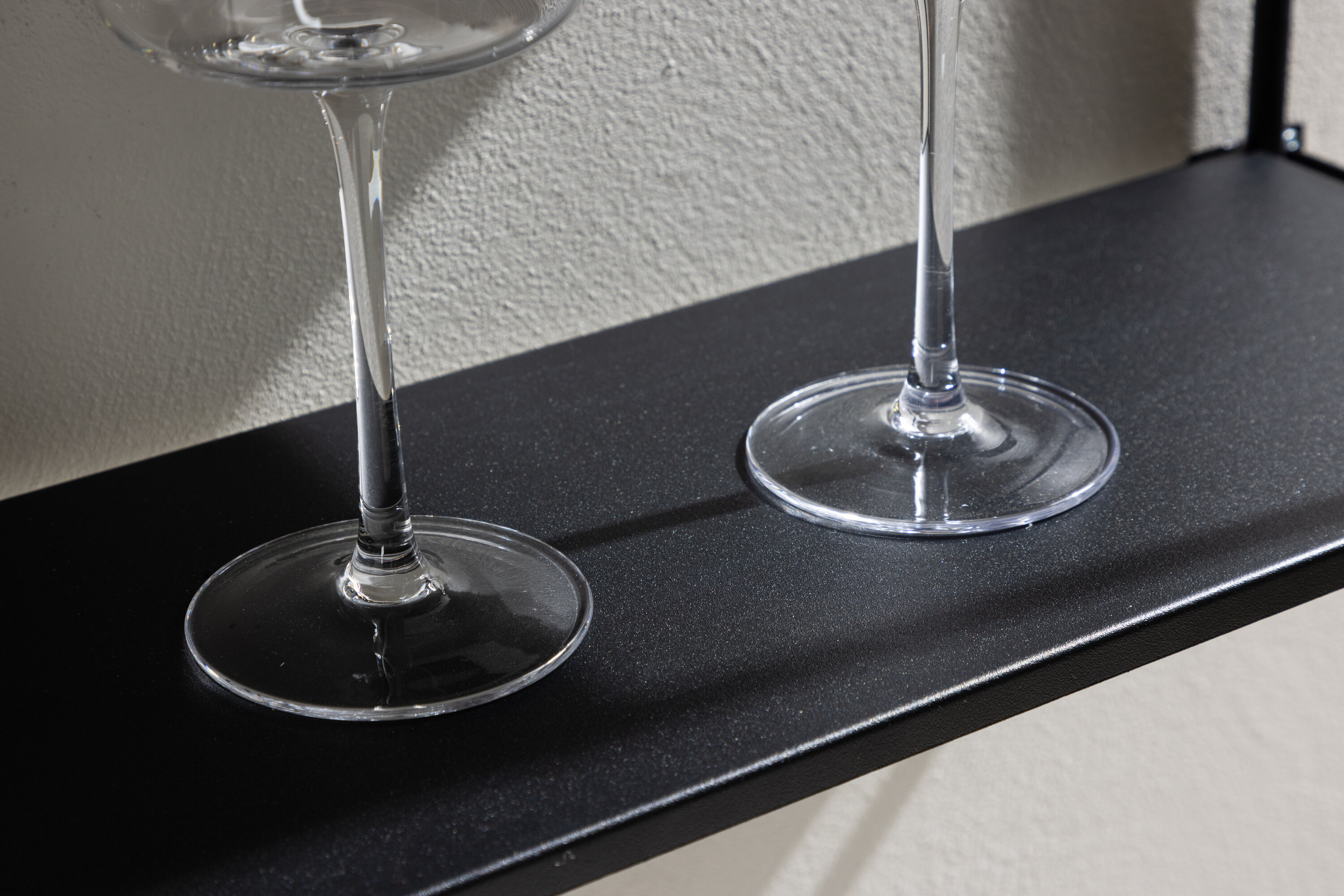 Ervaar tijdloze elegantie en slimme opbergruimte met onze strakke wandplank in zwart ijzer uit de Lyon-serie!