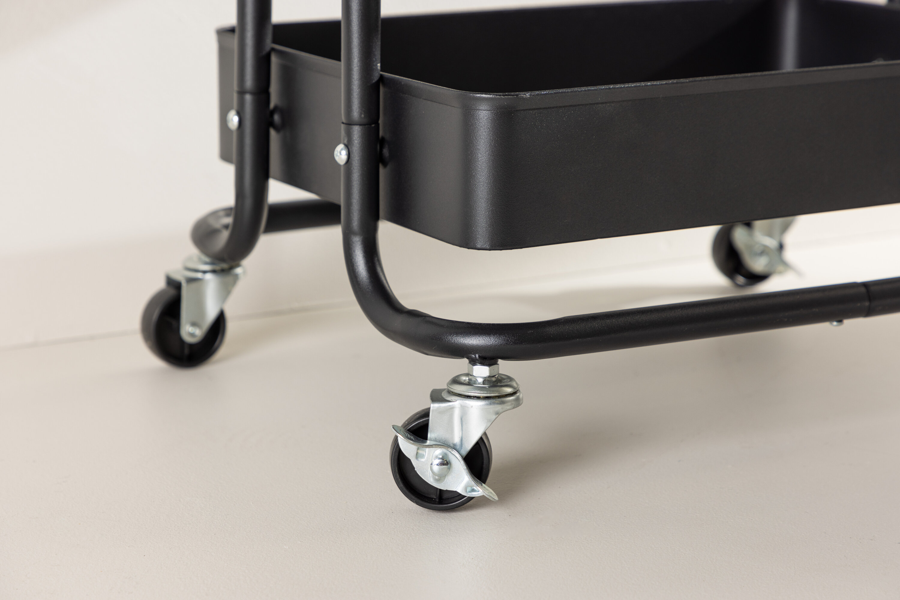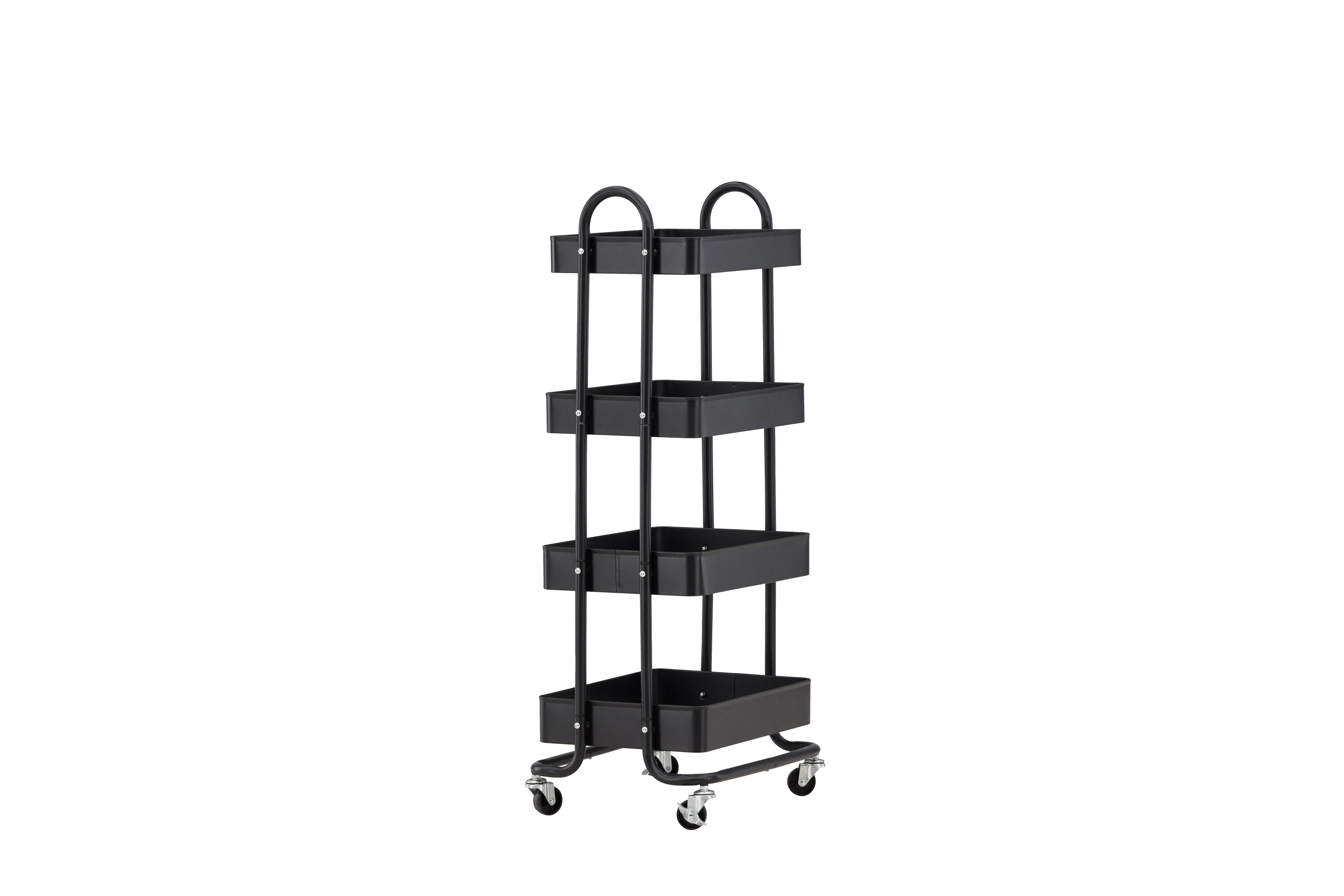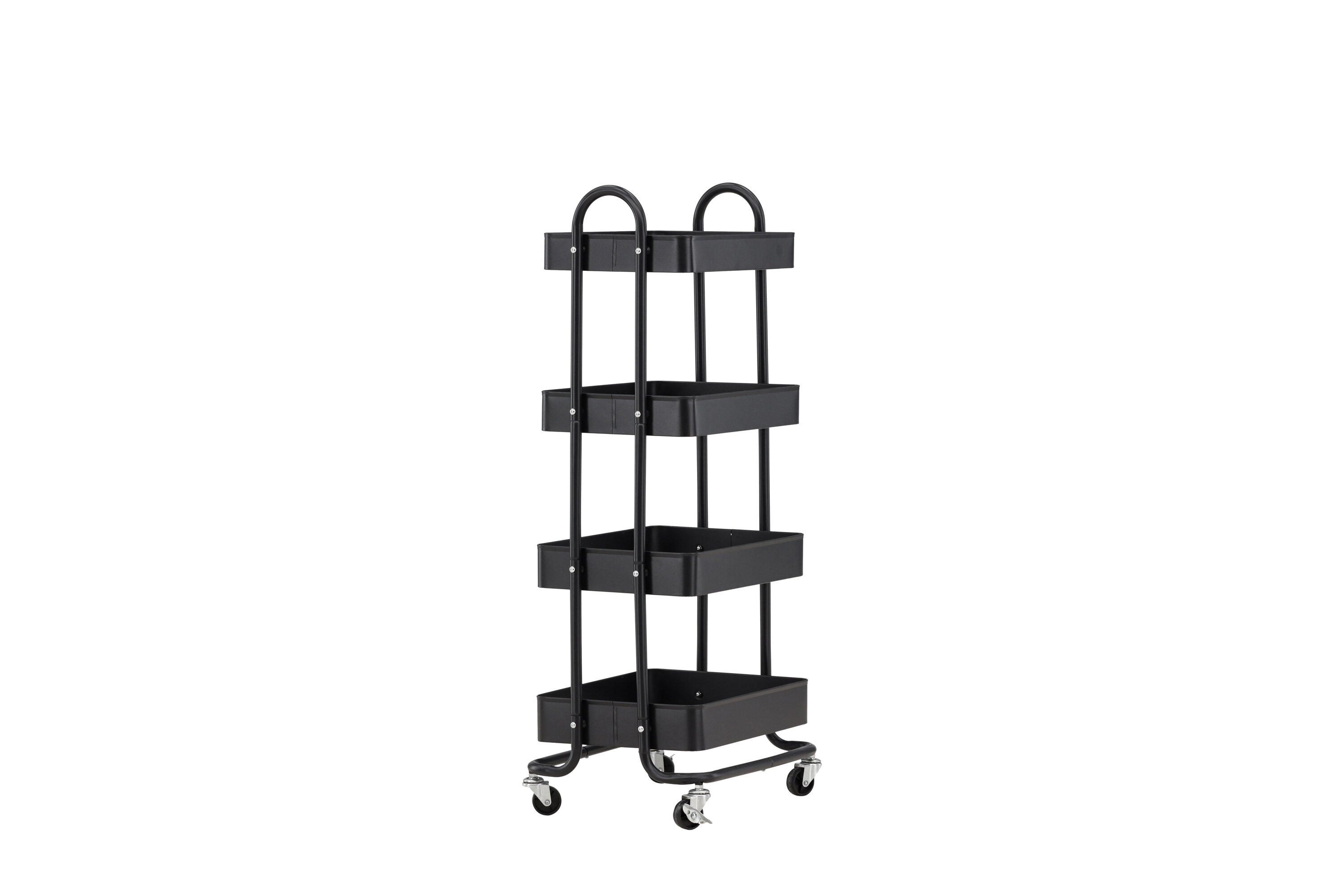 De functionaliteit van Manaus heeft verschillende voordelen. De plank is gemaakt van zwart gepoedercoat metaal, vormt gemakkelijk een aanvulling op andere decoraties en is na verloop van tijd duurzaam. Met vier gladde wielen aan de onderkant kun je hem ook gemakkelijk verplaatsen. Plaats hem in de badkamer en vul hem met handdoeken en hygiëneproducten, of in de kast voor wat extra kledingopslag.