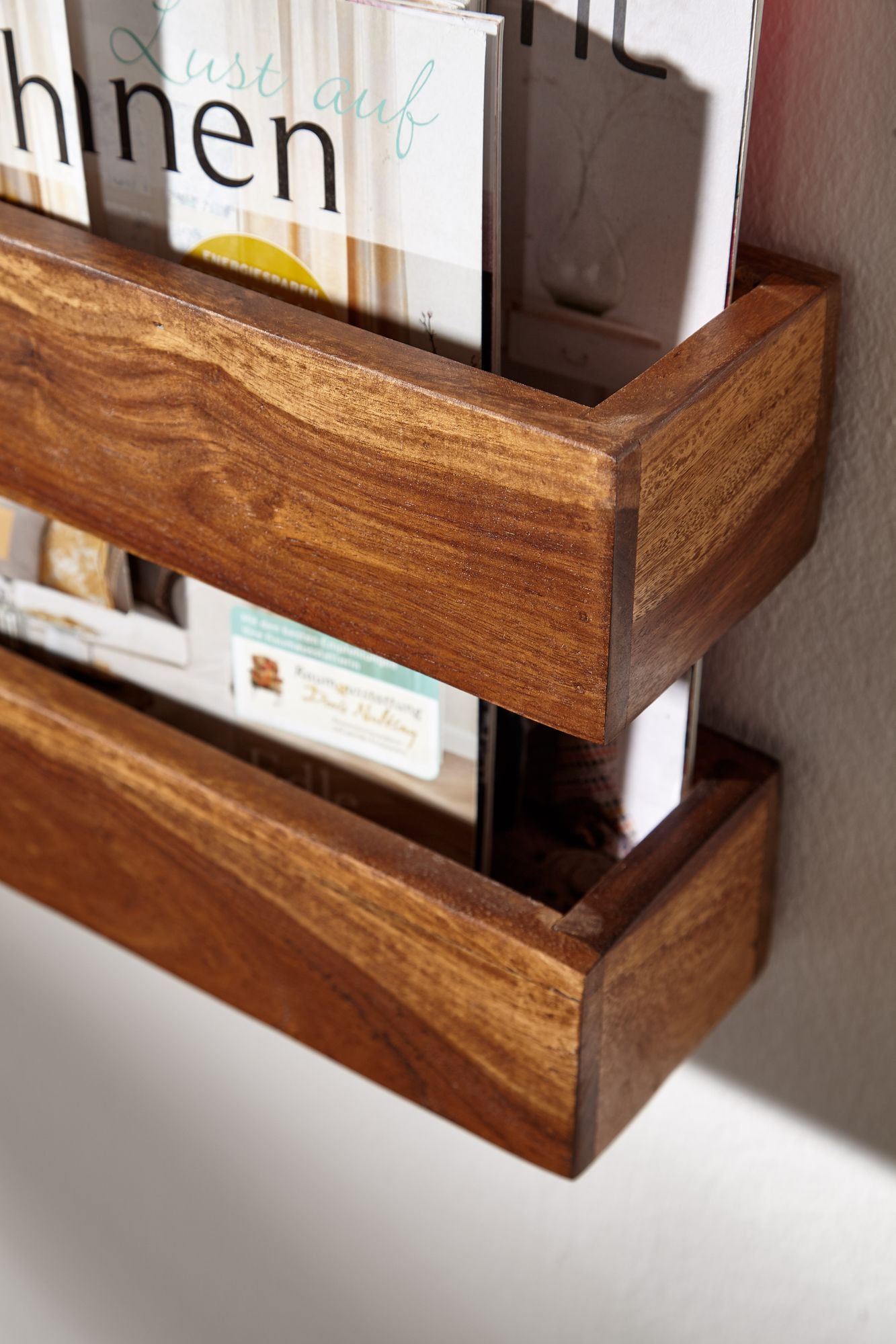 MUMBAI Krantenhouder | Massief Sheeshamhout Natuurlijk | 30x72x10 cm | 2 vakken