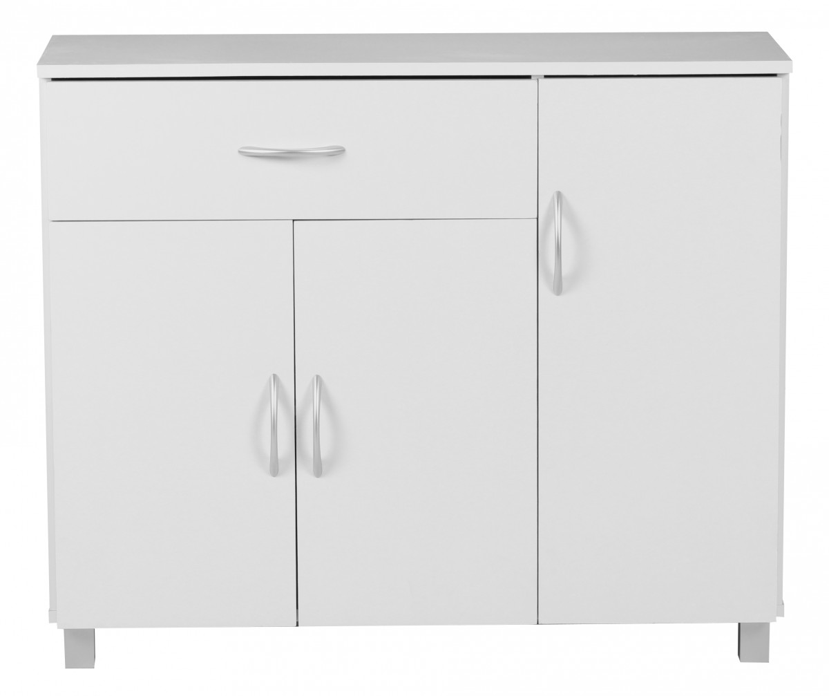 Design dressoir SETE mat wit 90 x 75 x 30 cm | 1 lade & 3 deuren, grijze aluminiumgrepen