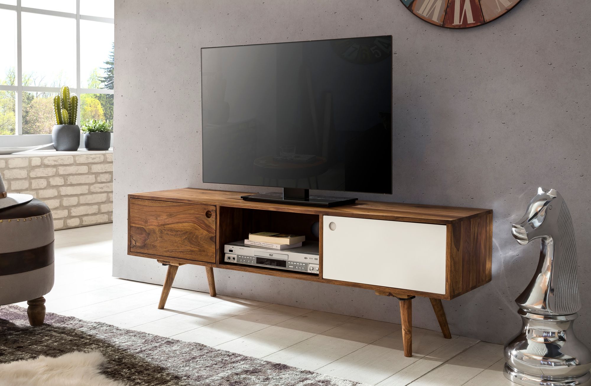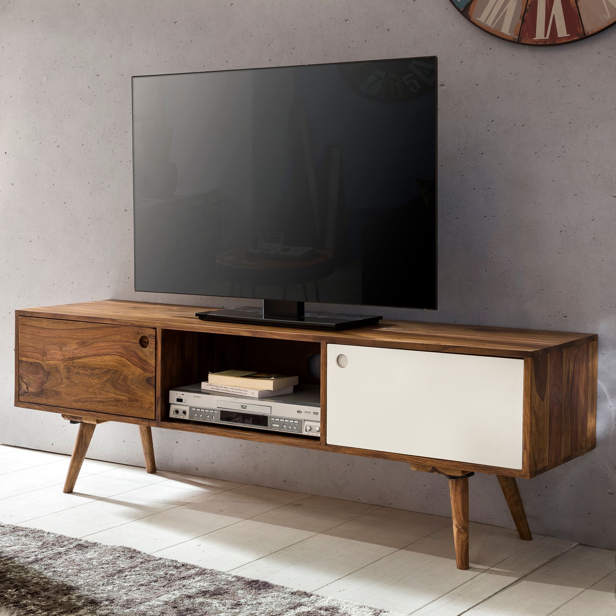 TV Lowboard REPA 140 cm | Massief Sheesham Hout | Houtkleur & Wit | Afmetingen 140x45x35 cm