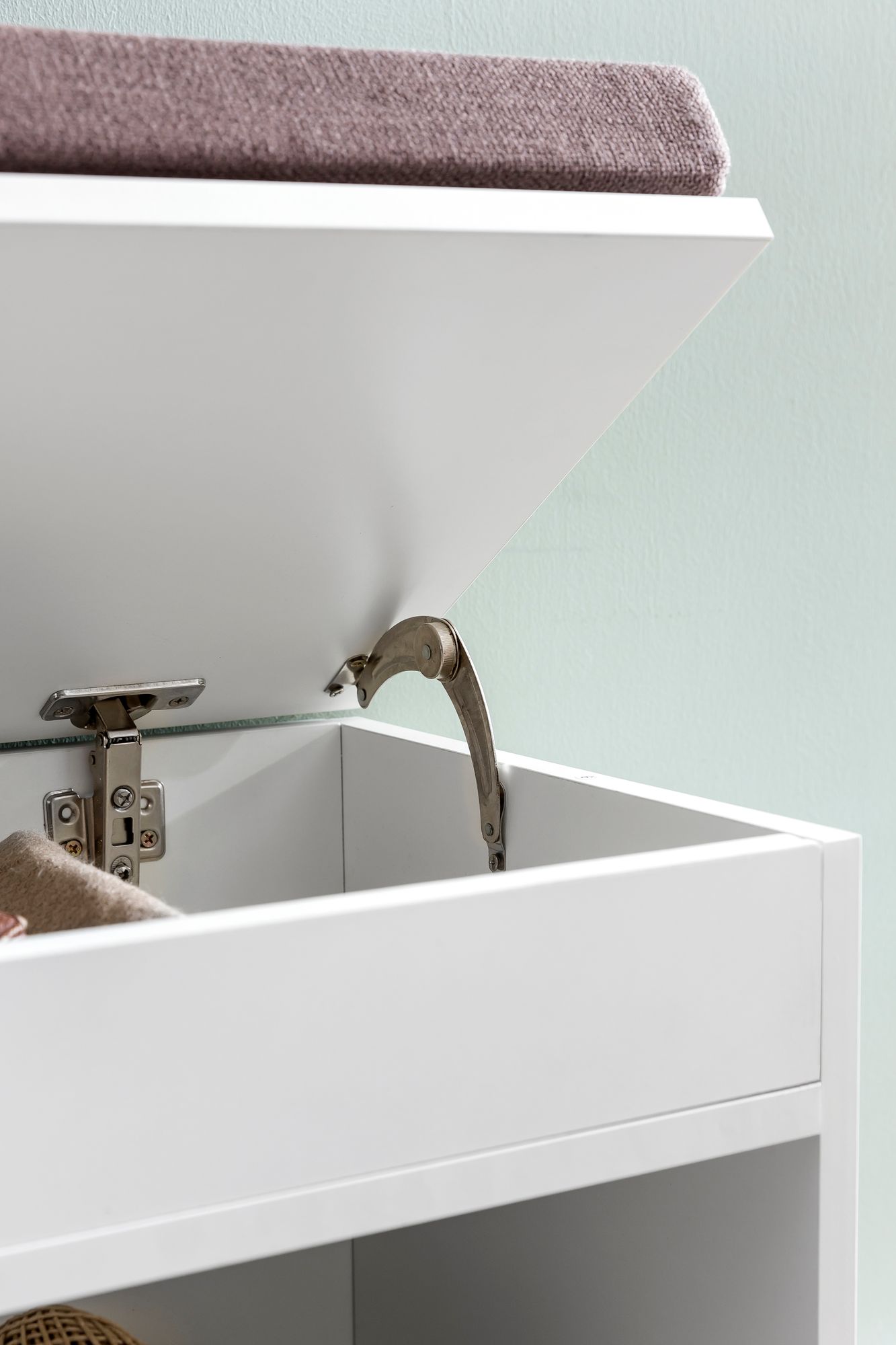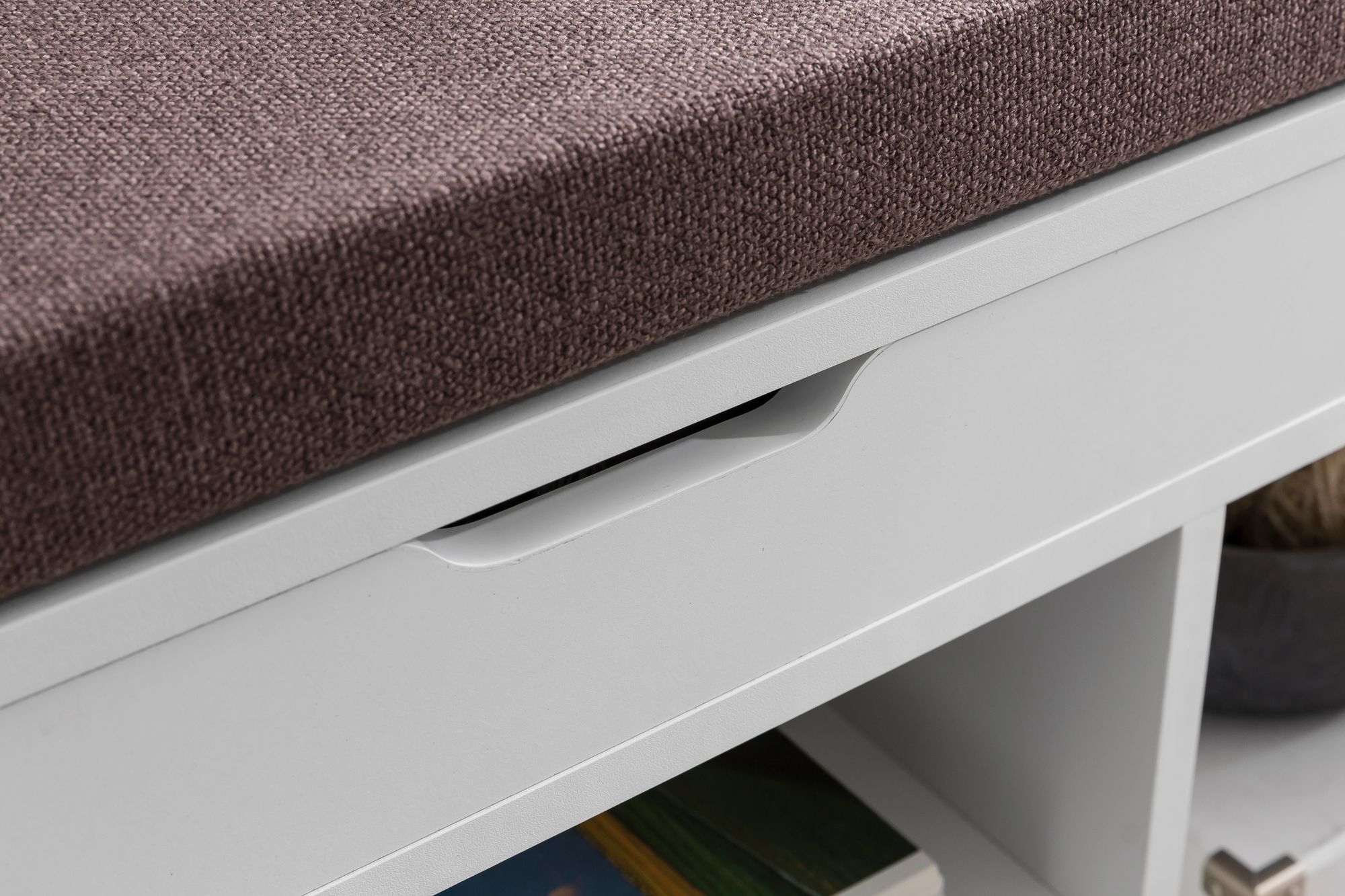 Productinformatie "Witte opbergbank met stoffen zitting | 104x51x32 cm"