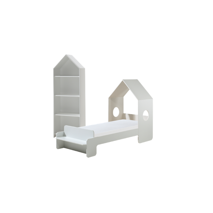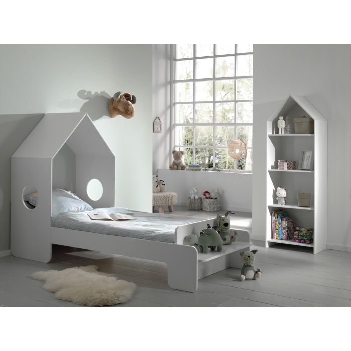Het CASAMI bed is vervaardigd uit wit gelakte MDF en heeft een afmeting van 90 x 200 cm. Het dakje zorgt voor een knus gevoel en het bed beschikt ook over een extra zitbankje/boekenplankje. Bij deze combinatie is een CASAMI kast in de vorm van een strandhuisje zonder deur inbegrepen. Ideaal om te gebruiken als opbergruimte voor kledij, speelgoed, boeken, beddengoed,..