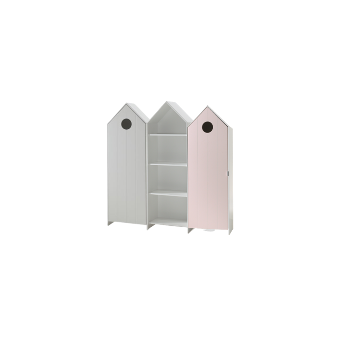 De kastjes uit de CASAMI collectie in de vorm van een strandhuisje geven meteen een speelse en kleurrijke toets aan elke kinderkamer. U kan ze combineren met verschillende artikels uit onze andere collecties. De kastjes met deuren in wit en lichtroze hebben 3 legplanken en een kledinghanger. De open kast in wit beschikt over 3 legplanken die naar eigen keuze kunnen worden ingedeeld. Er is dus voldoende opbergruimte voorzien voor kledij, speelgoed, boeken, beddengoed,...