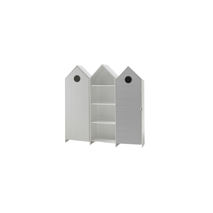 De kastjes uit de CASAMI collectie in de vorm van een strandhuisje geven meteen een speelse en kleurrijke toets aan elke kinderkamer. U kan ze combineren met verschillende artikels uit onze andere collecties. De kastjes met deuren in wit en grijs hebben 3 legplanken en een kledinghanger. De open kast in wit beschikt over 3 legplanken die naar eigen keuze kunnen worden ingedeeld. Er is dus voldoende opbergruimte voorzien voor kledij, speelgoed, boeken, beddengoed,...