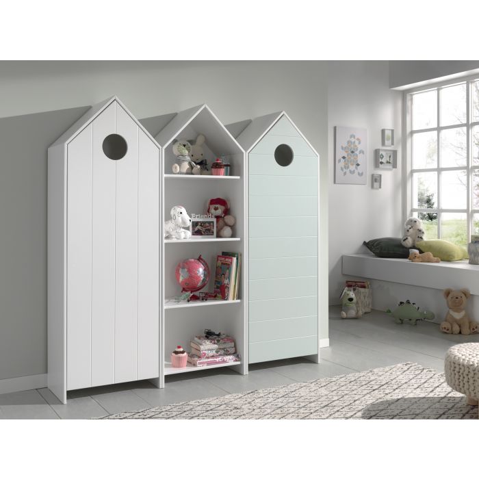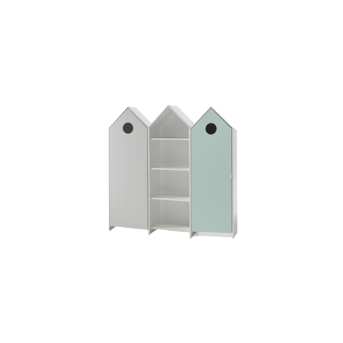 De kastjes uit de CASAMI collectie in de vorm van een strandhuisje geven meteen een speelse en kleurrijke toets aan elke kinderkamer. U kan ze combineren met verschillende artikels uit onze andere collecties. De kastjes met deuren in wit en mintgroen hebben 3 legplanken en een kledinghanger. De open kast in wit beschikt over 3 legplanken die naar eigen keuze kunnen worden ingedeeld. Er is dus voldoende opbergruimte voorzien voor kledij, speelgoed, boeken, beddengoed,...