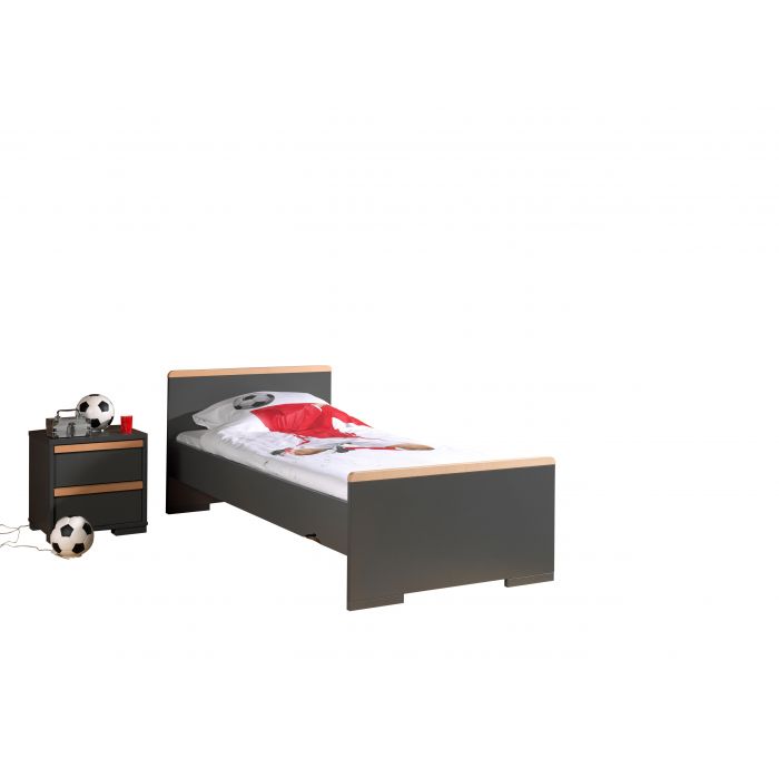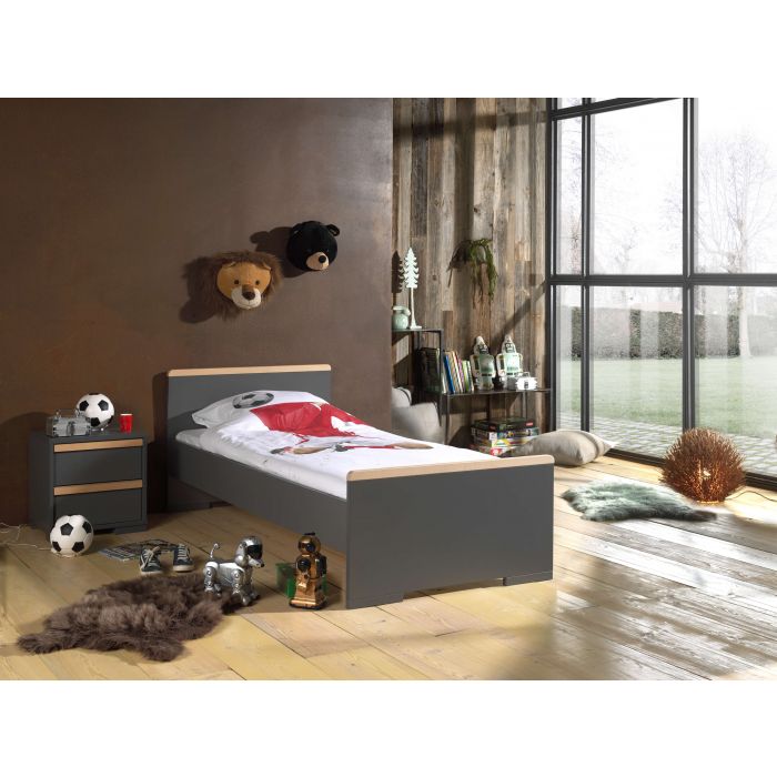 Het LONDON bed (90x200) in antraciet heeft een Scandinavisch karakter door de combinatie met massief grenen. Het bed werd afgewerkt in witte melamine wat zeer stevig en krasvrij is. Het nachtkastje beschikt over 2 uiterst handige lades die elk beschikken over een soft-close systeem. De smaakvolle accenten geven deze collectie meteen een stijlvol uiterlijk.