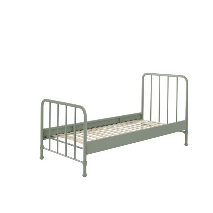 Het BRONXX bed is een metalen bed van 90x200 cm. De afwerking in het mat olijfgroen geeft het industrieel design een extra boost. De lattenbodem is inbegrepen.