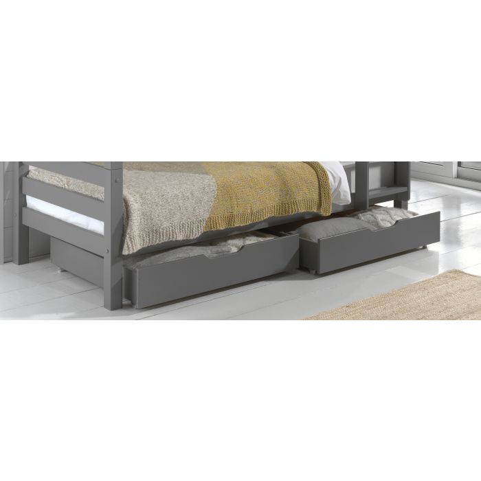 Deze set van 2 grijsgelakte PINO lades bestaat uit massief Scandinavisch grenen hout. Deze 2 lades zijn perfect compatibel met onze PINO stapelbedden .