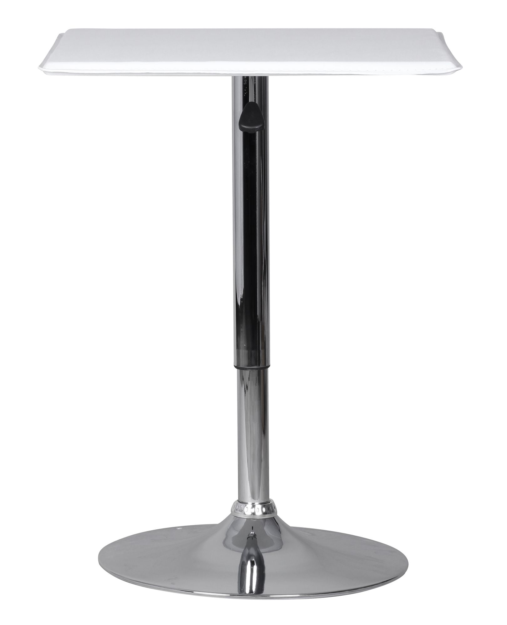 Productinformatie "Verstelbare Vierkante Bartafel van Wit Kunstleer | 63x63 cm | Verchroomde Trompetvoet"