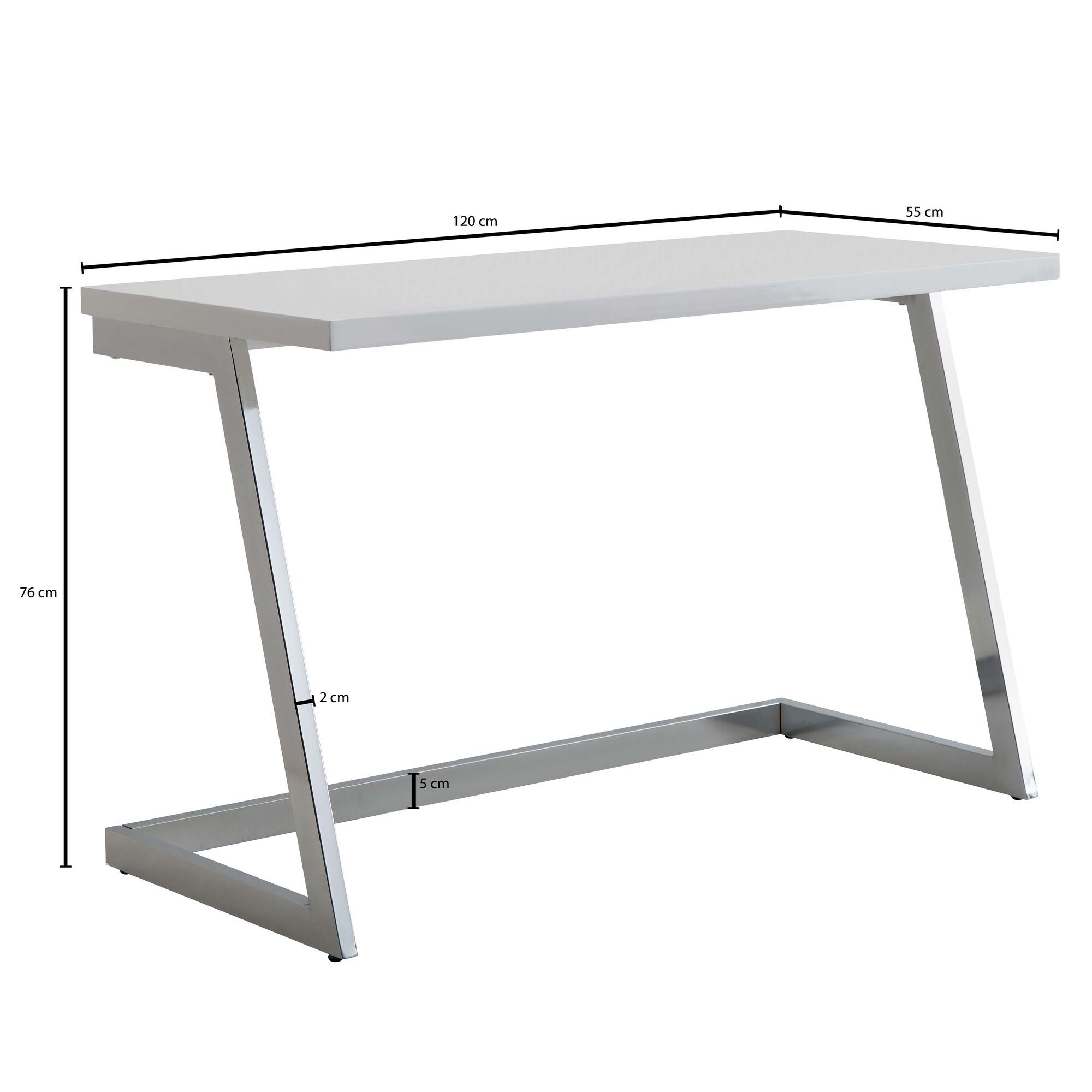 Bureau Hoogglans Wit / Zilver | 120x55x76 cm | Gelakt MDF Blad en Verchroomde Poten