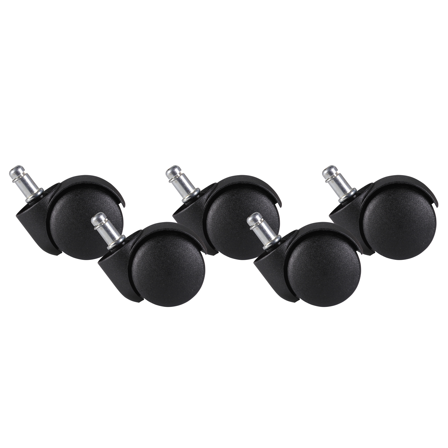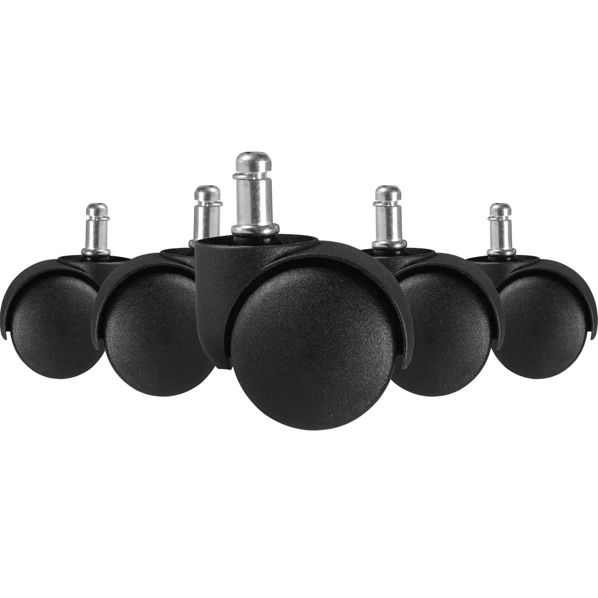 Set van 5 bureaustoelwieltjes ontworpen voor zachte vloeren zoals tapijt en vilt. Gemaakt van hoogwaardig kunststof voor duurzaamheid en slijtvastheid.