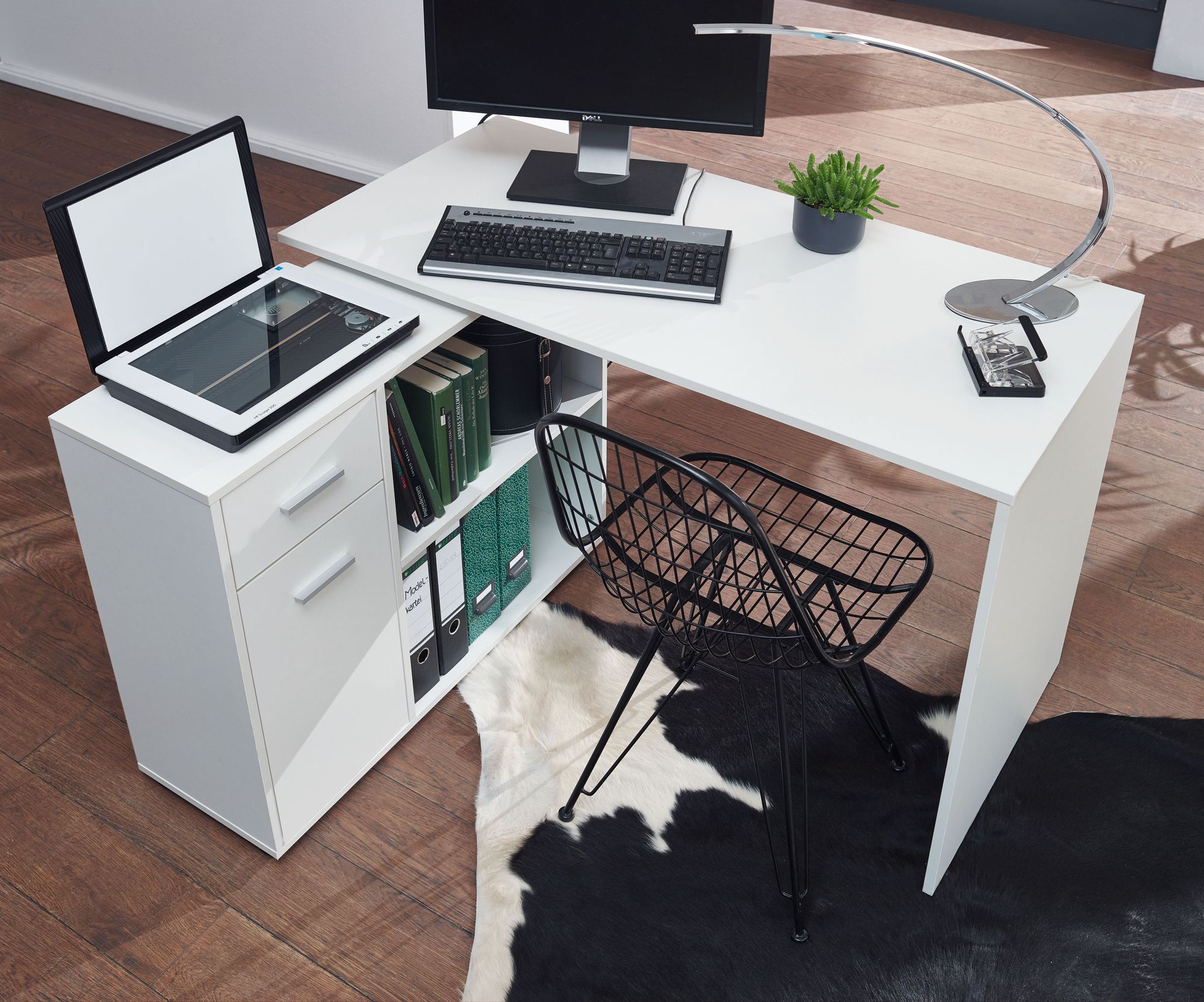 Design Hoekbureau met plank | Wit | 120 x 75,5 x 106,5 cm