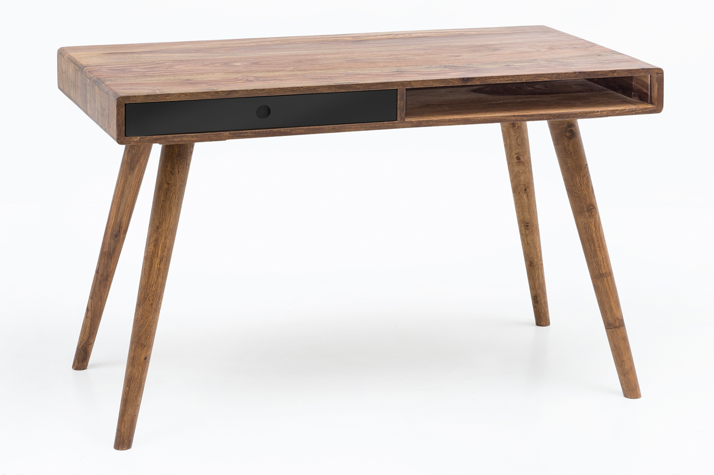 REPA retro bureau van massief natuurlijk Sheesham hout | Houtkleur & zwart | 117 x 60 x 75 cm