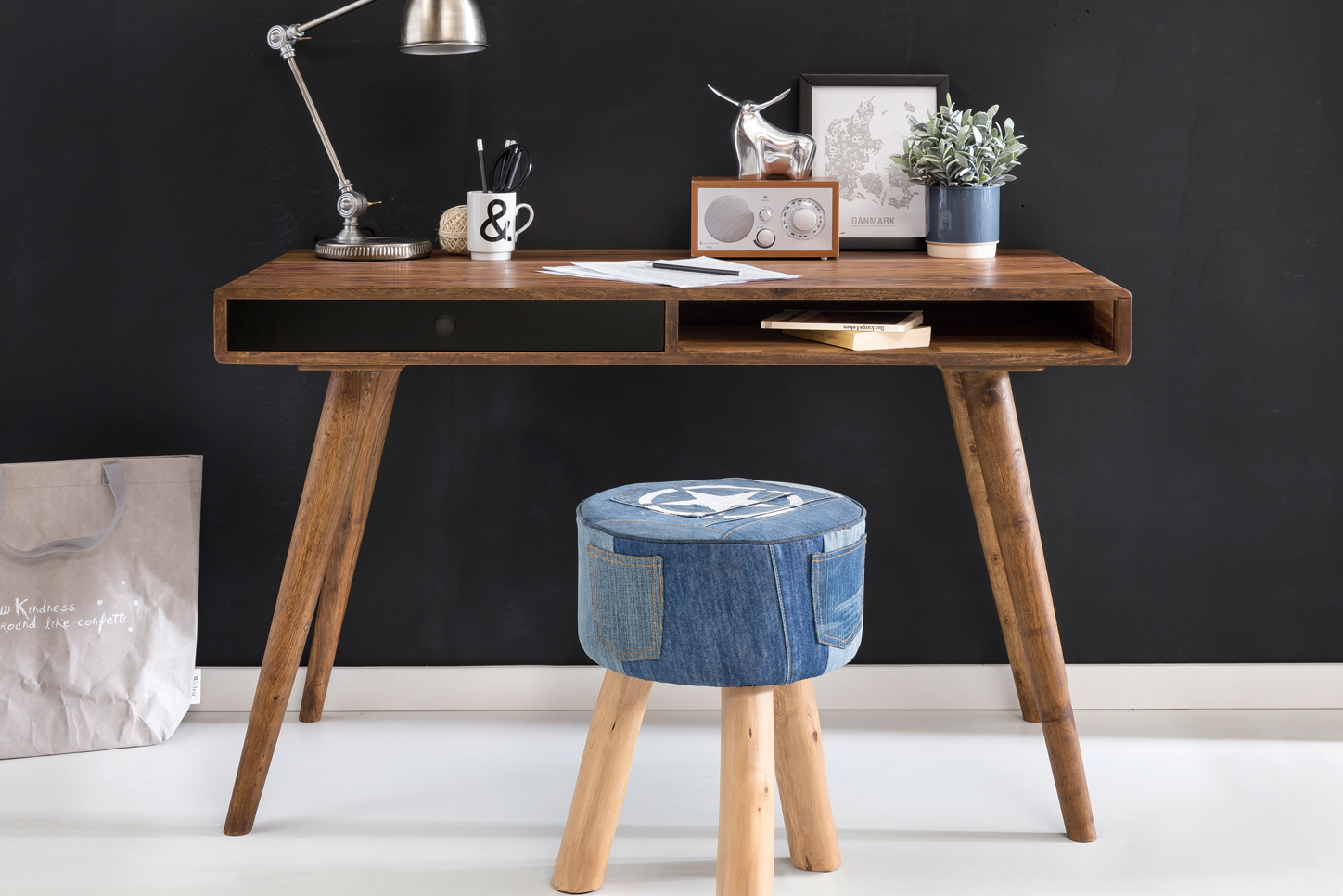 Het REPA bureau heeft een warme retro stijl, gemaakt van massief natuurlijk Sheesham hout, ideaal voor een stijlvolle en functionele werkplek. Het ruime tafelblad biedt optimaal comfort voor computerwerk en dagelijkse taken.