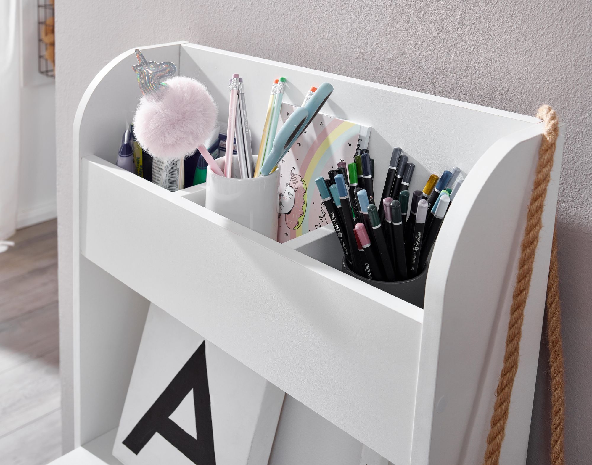 Voordelen: Functioneel en duurzaam meubelstuk dat de zelfstandigheid van kinderen bevordert en hun werkruimte netjes houdt.
