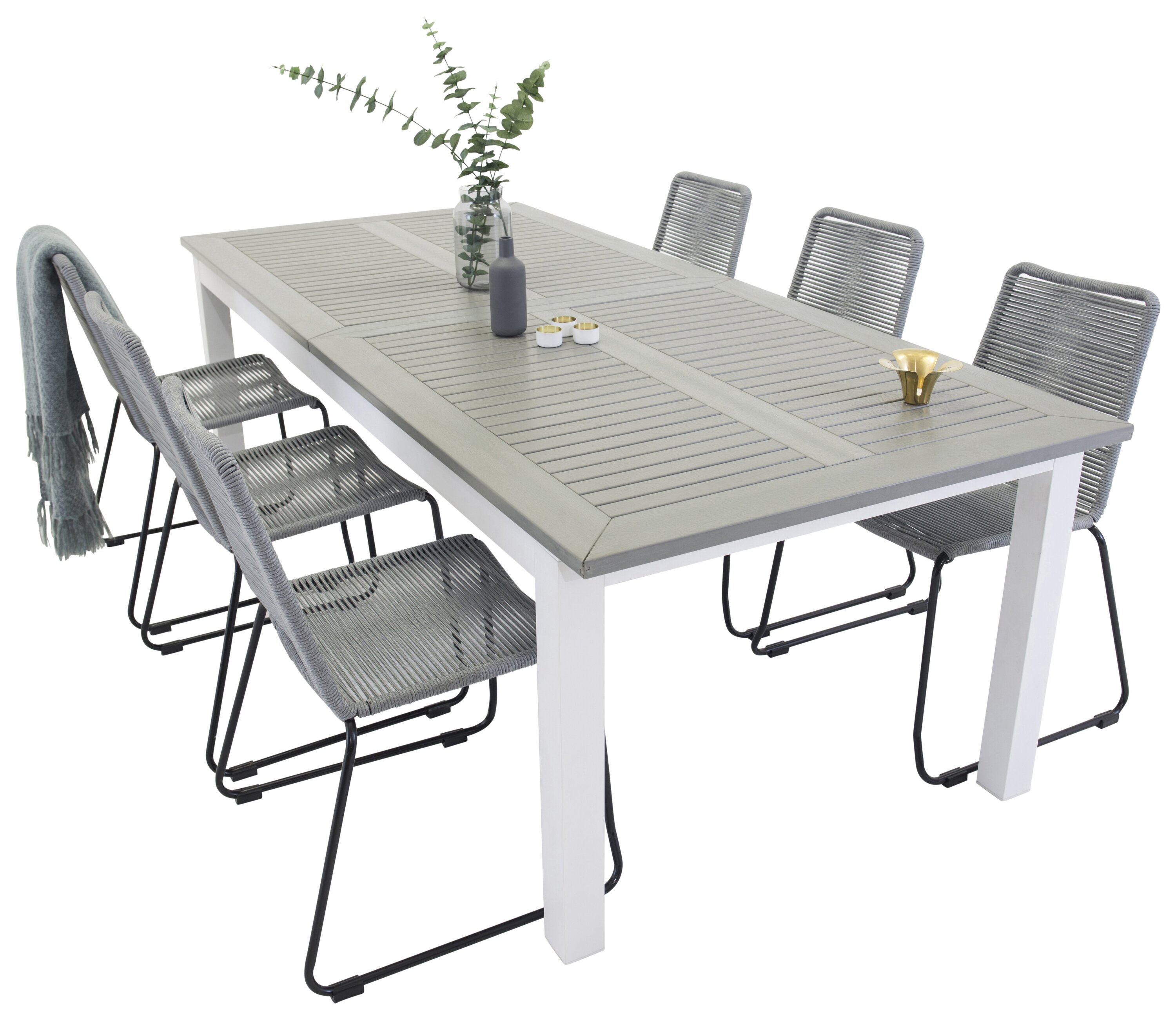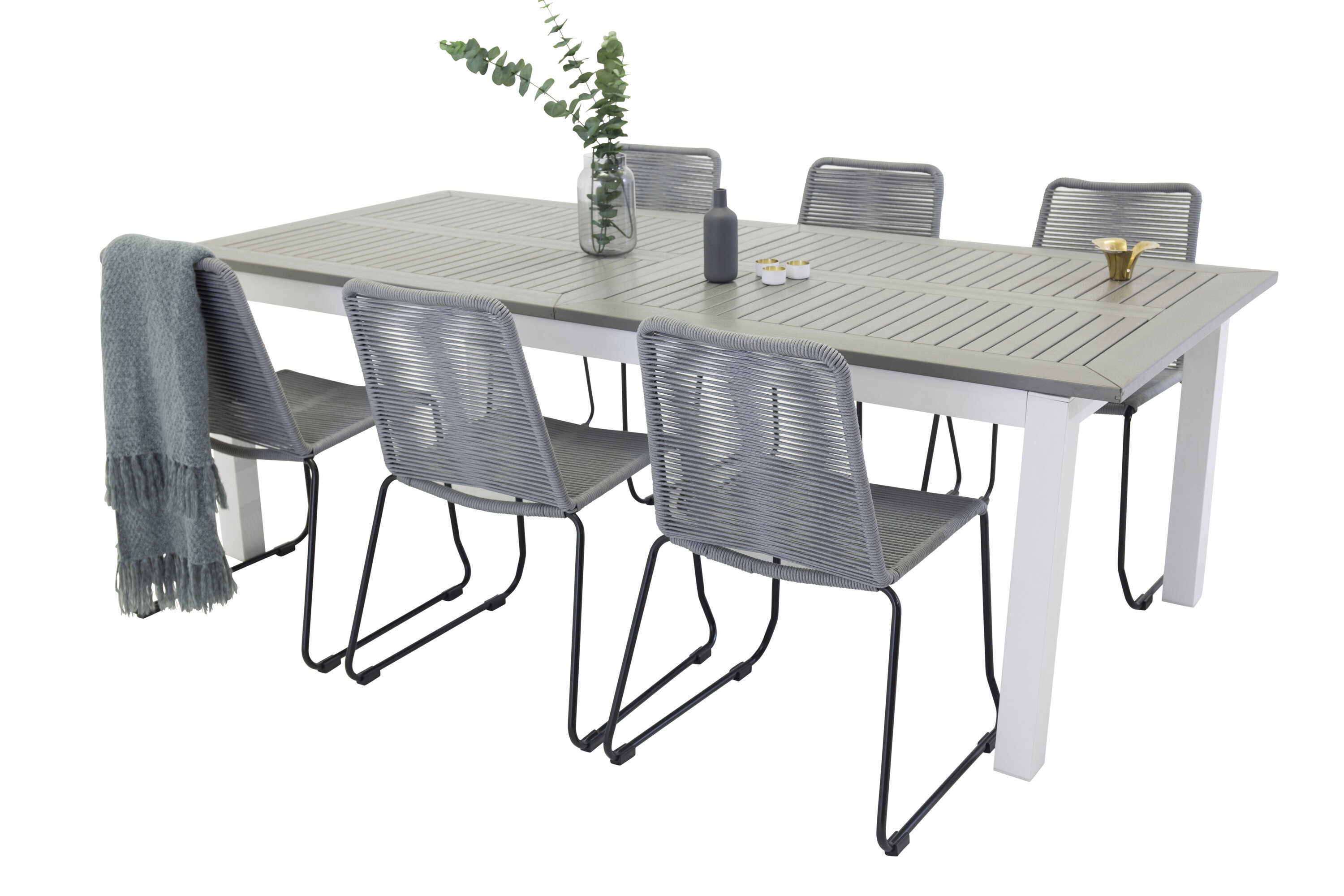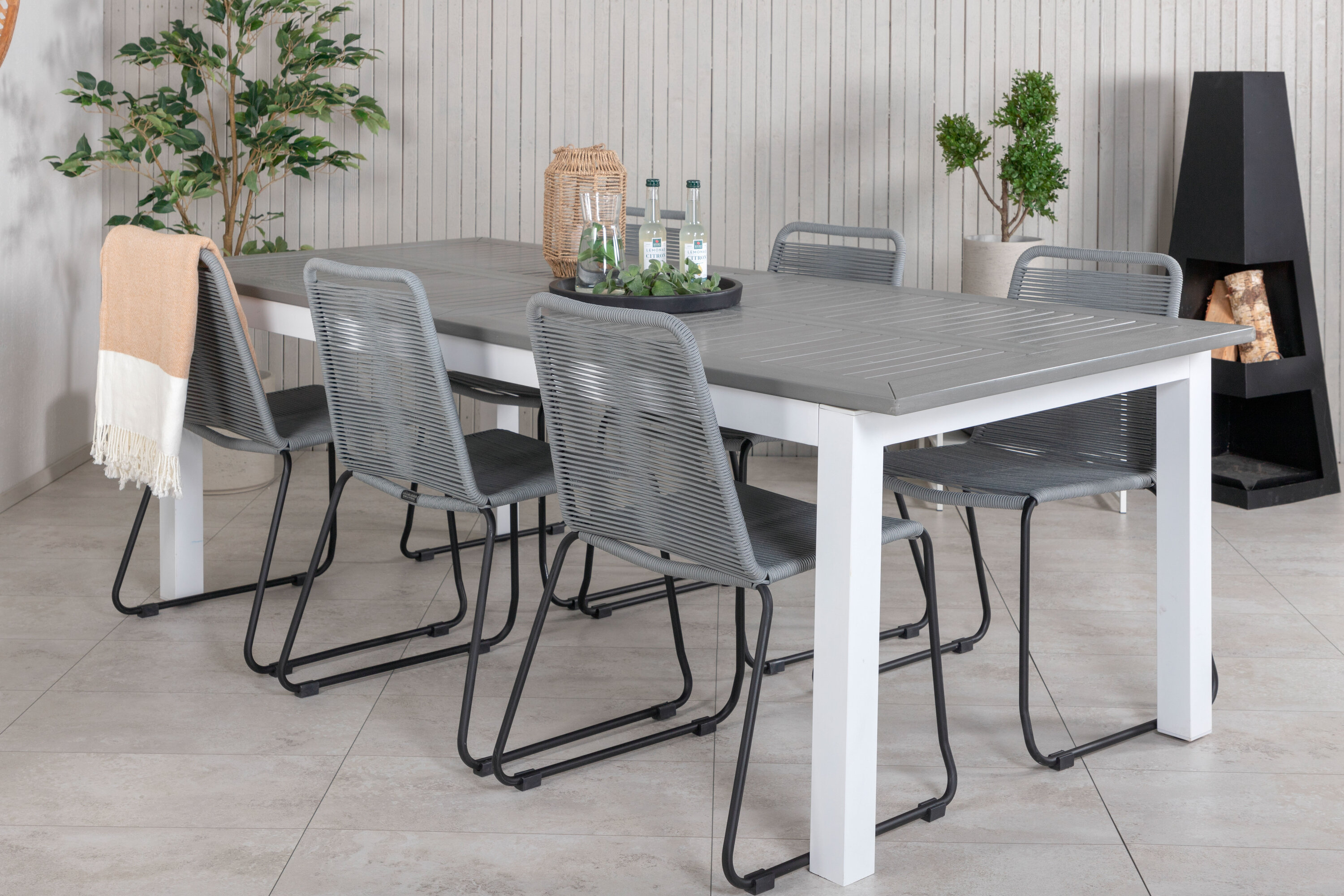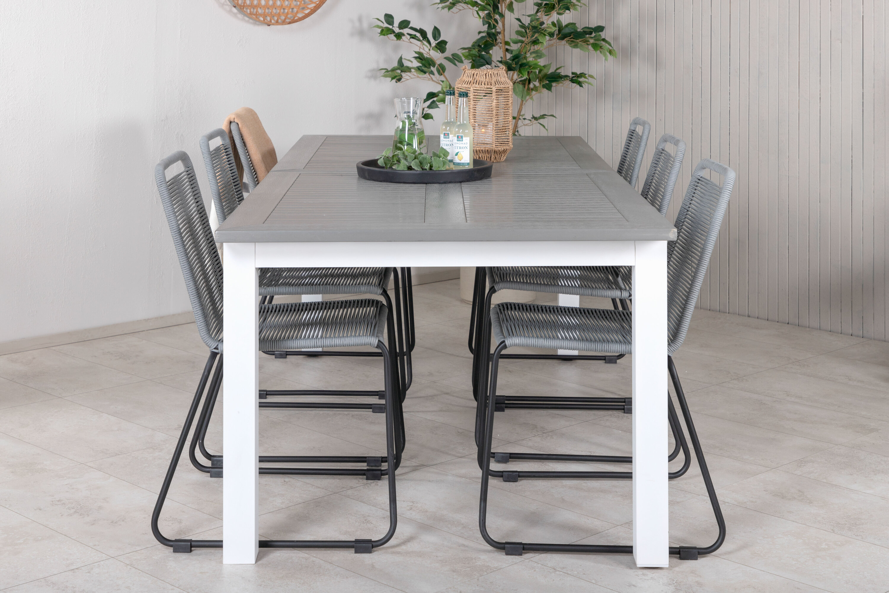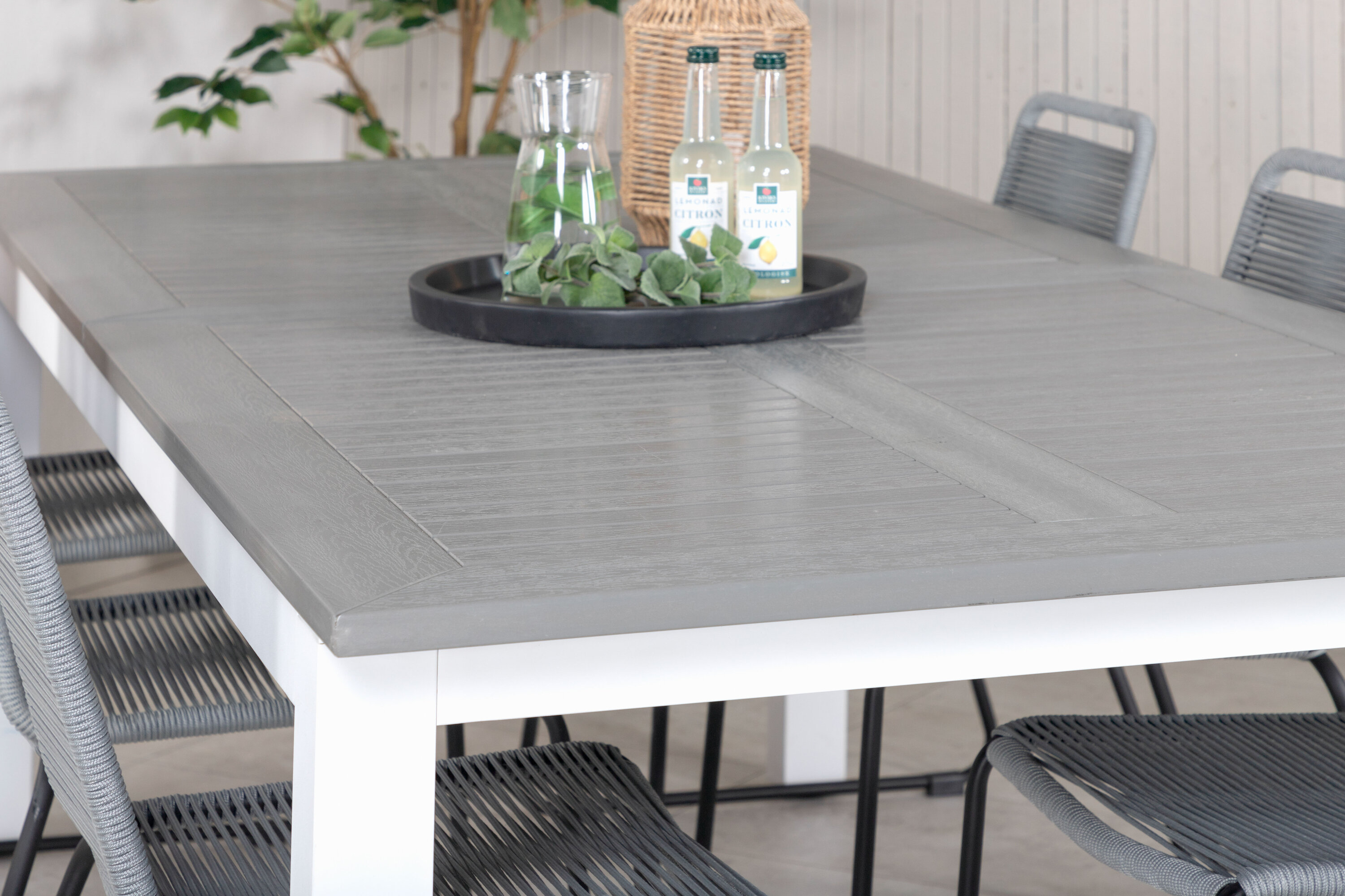 Albany Bord - Vit Alu/grå aintwood - 224/324*100+Lindos Matstol - Svart / grå_6