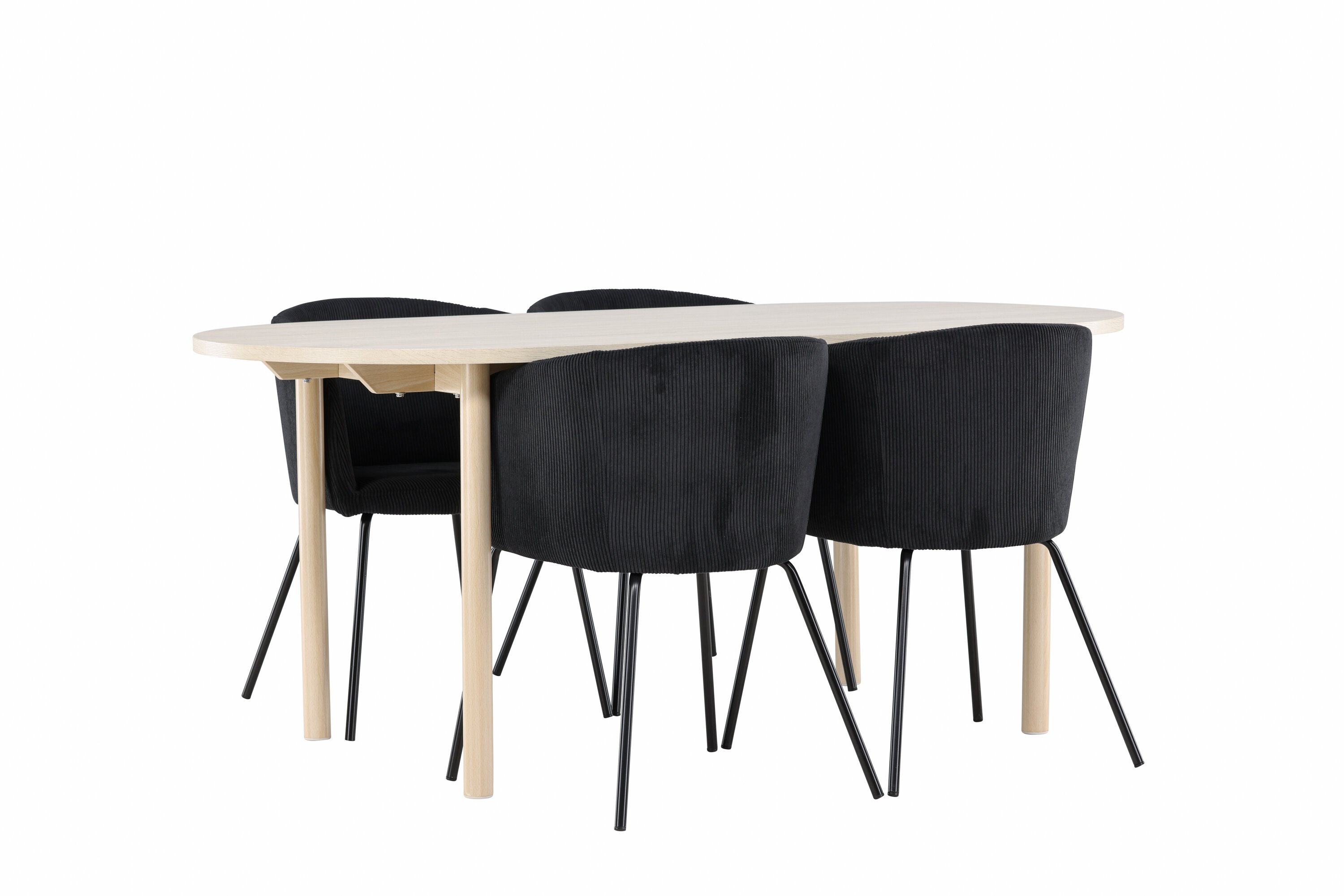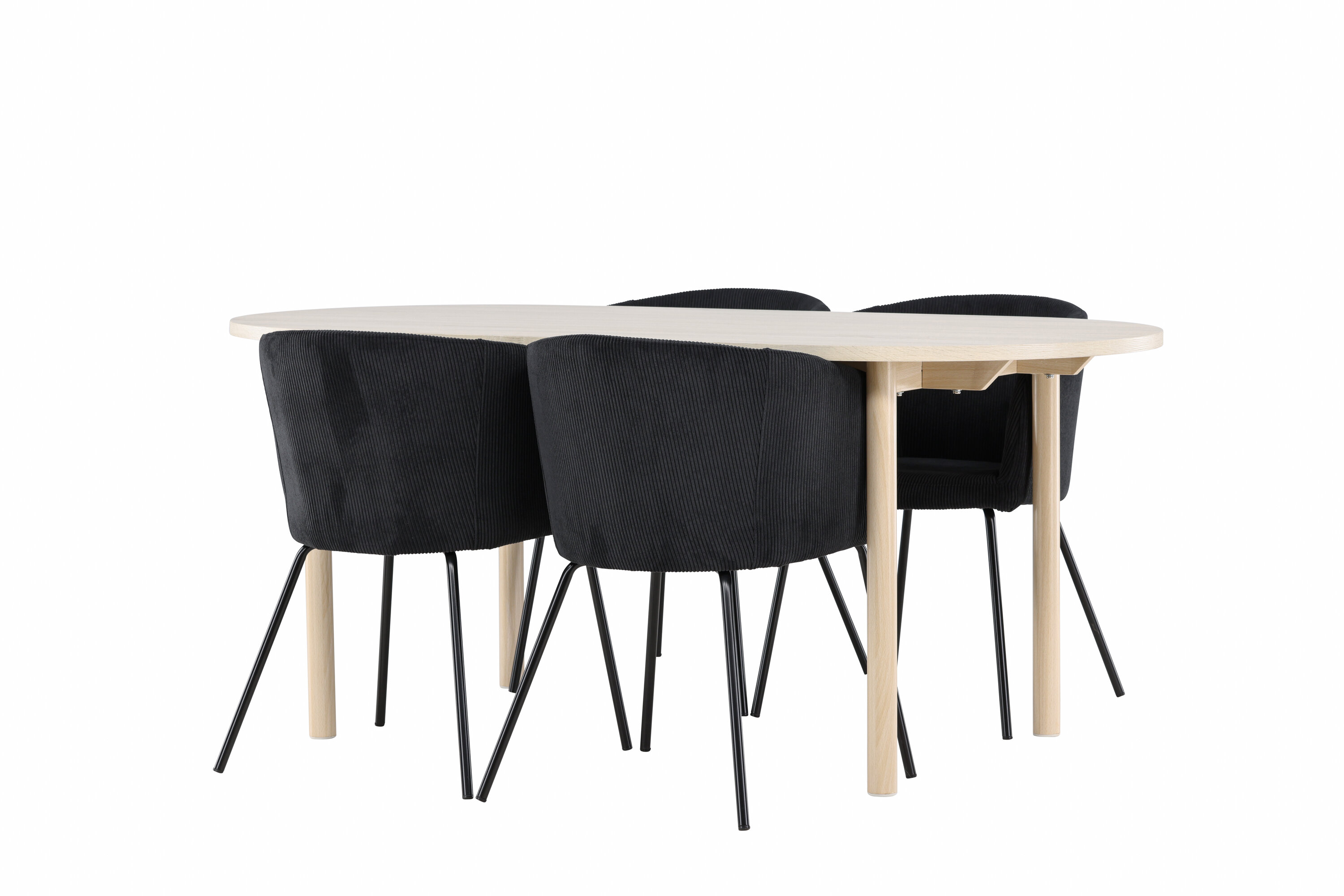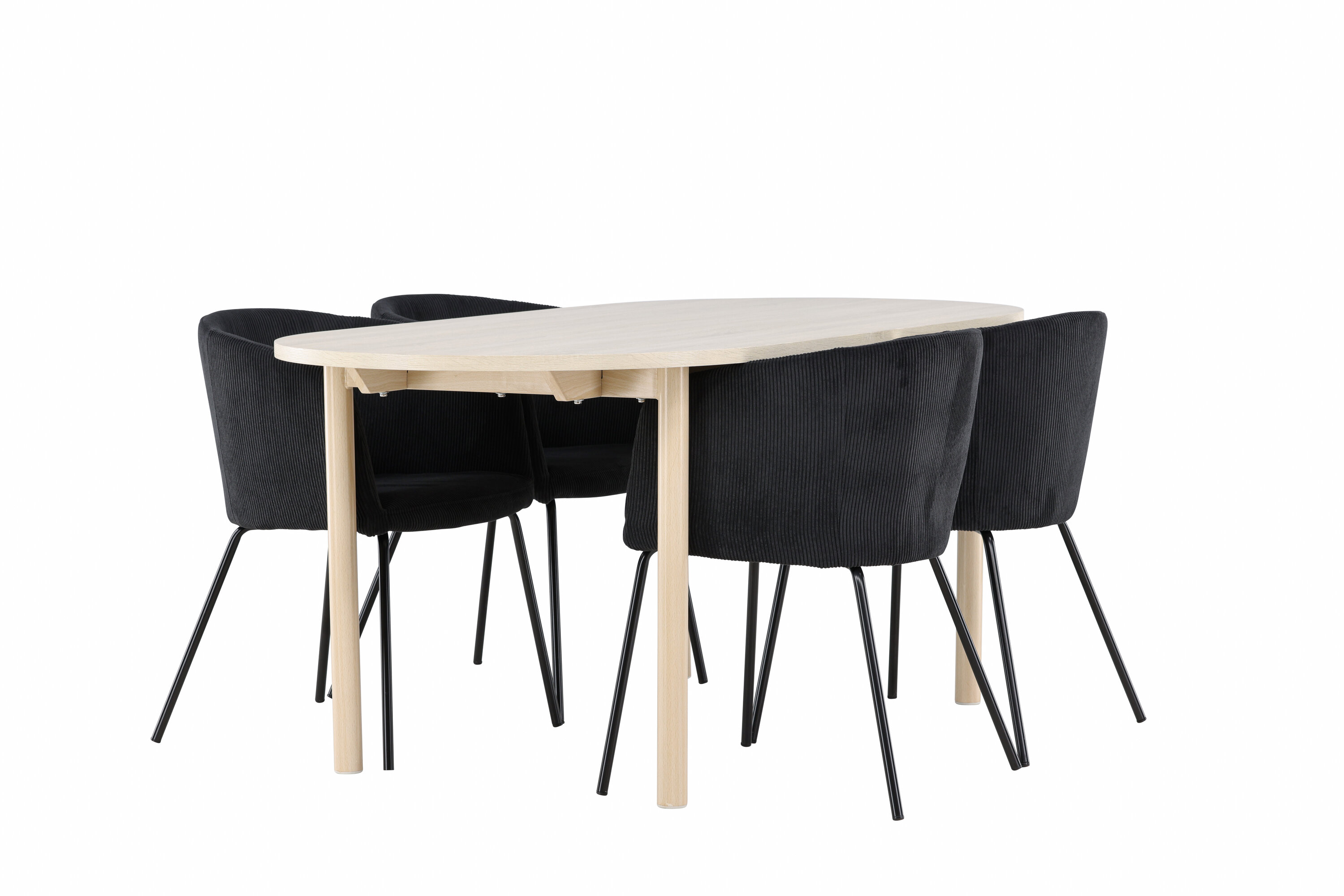 Ontdek de perfecte eetset voor je huis met de Andy eettafel en Berit eetkamerstoelen. Andy eettafel is een tijdloze functie die een perfecte plek wordt voor gezellige maaltijden. Met zijn witgekalkte kleur geeft Andy een aards en neutraal gevoel aan je eetkamer of keuken. De stalen poten en het MDF-tafelblad van de tafel combineren strakheid met robuustheid, waardoor het een betrouwbaar meubelstuk is voor vele jaren. Met royale afmetingen van 180x90 cm is er voldoende ruimte voor familie en vrienden om rond de tafel te komen en te genieten van lekker eten en aangenaam gezelschap. Vul je eettafel aan met Berit eetkamerstoelen, die luxueus comfort en moderne stijl uitnodigen. Met hun elegante zwart fluwelen bekleding en strakke zwart stalen poten is Berit een perfecte combinatie van verfijnd design en comfort. De stoel maakt indruk met zijn brede zitting, die voldoende ruimte biedt voor een comfortabele zitervaring tijdens maaltijden of lange gesprekken aan de eettafel. De moderne uitstraling van Berit en de stijlvolle zwarte stalen poten geven een onderscheidend en stijlvol karakter dat elke eetkamer naar een hoger niveau tilt. Geef je eetkamer een gevoel van luxe en moderniteit met Andy eettafel en Berit eetkamerstoelen - een tijdloze en stijlvolle combinatie die een gezellige sfeer en een uitnodigende omgeving creëert voor al je maaltijden.