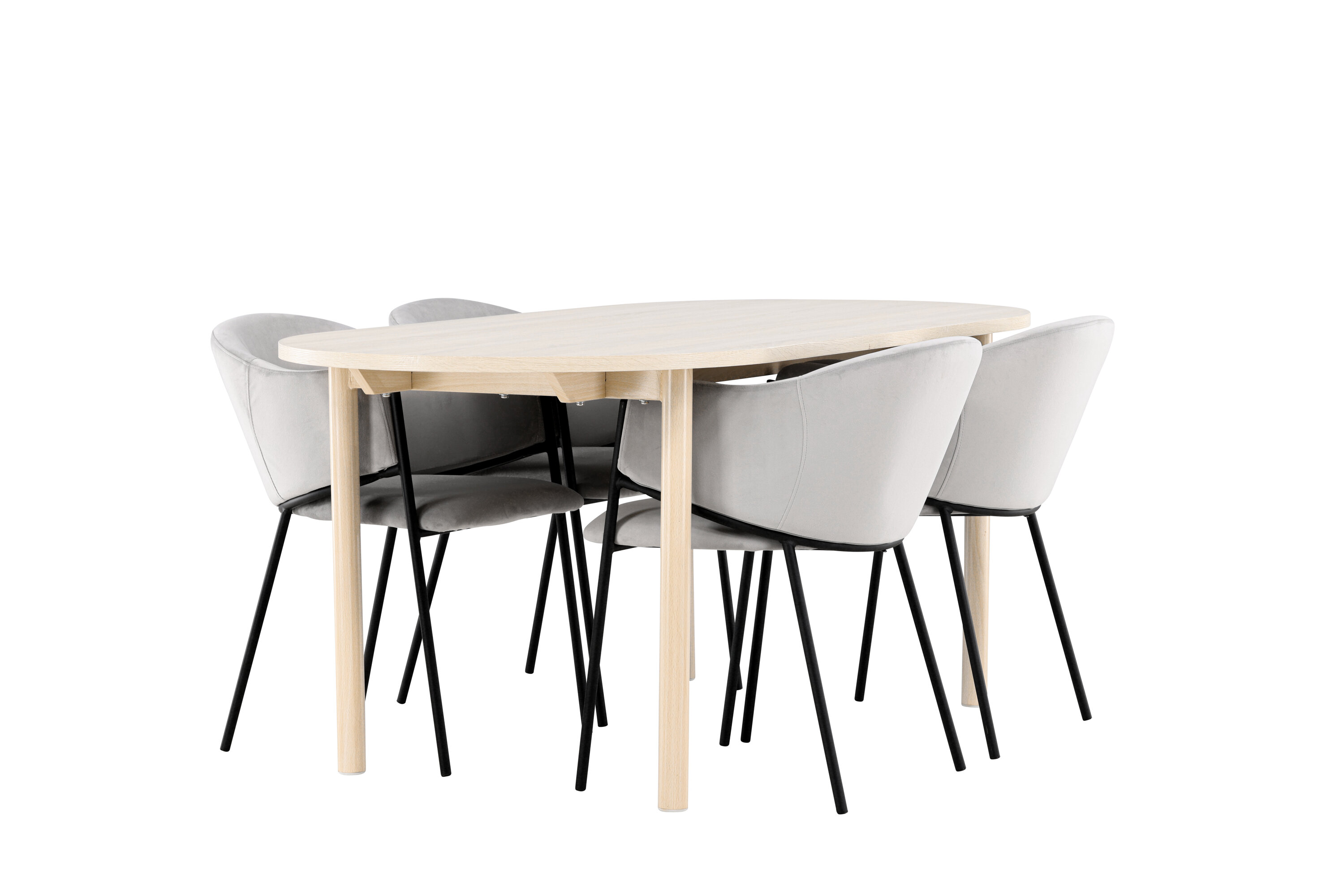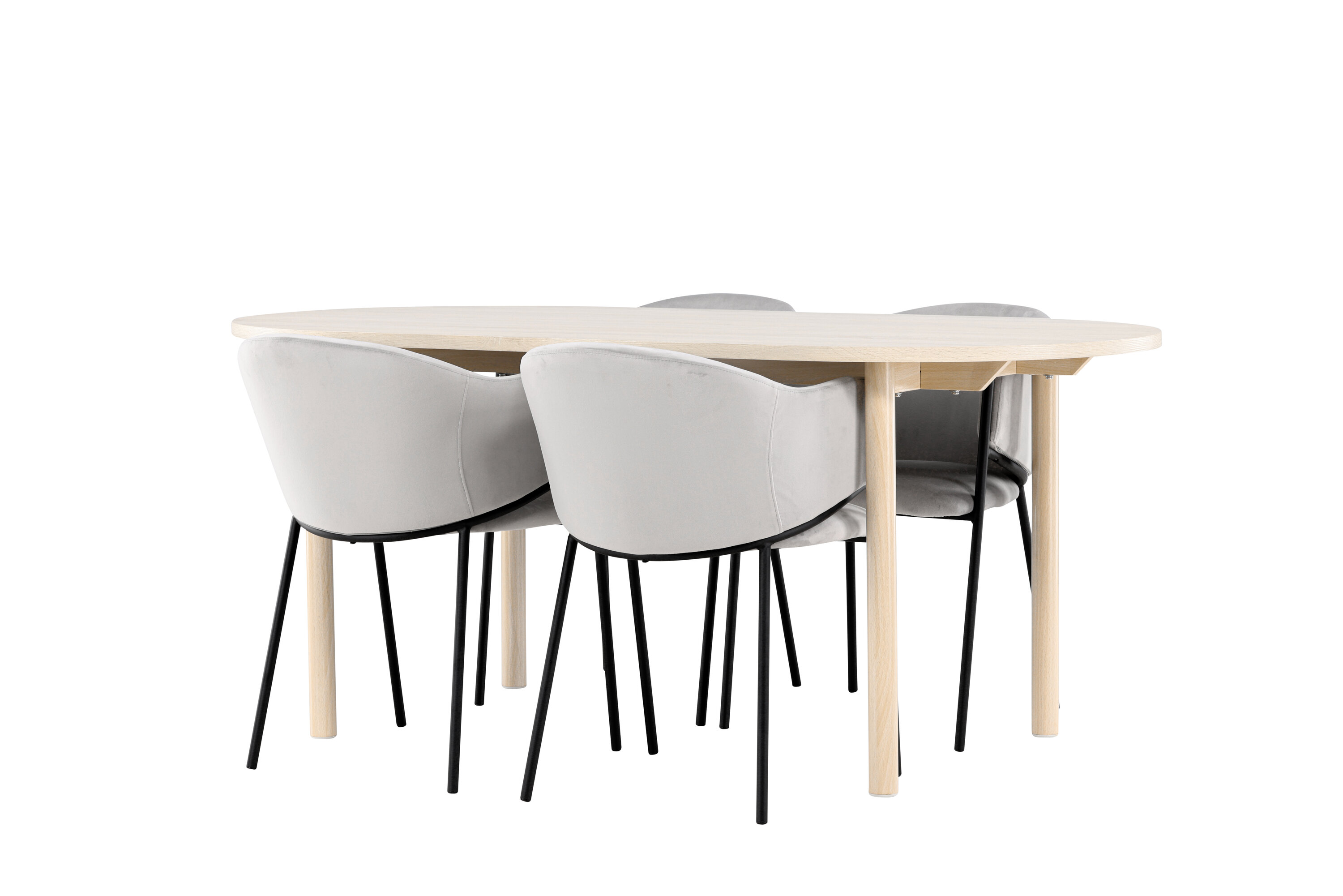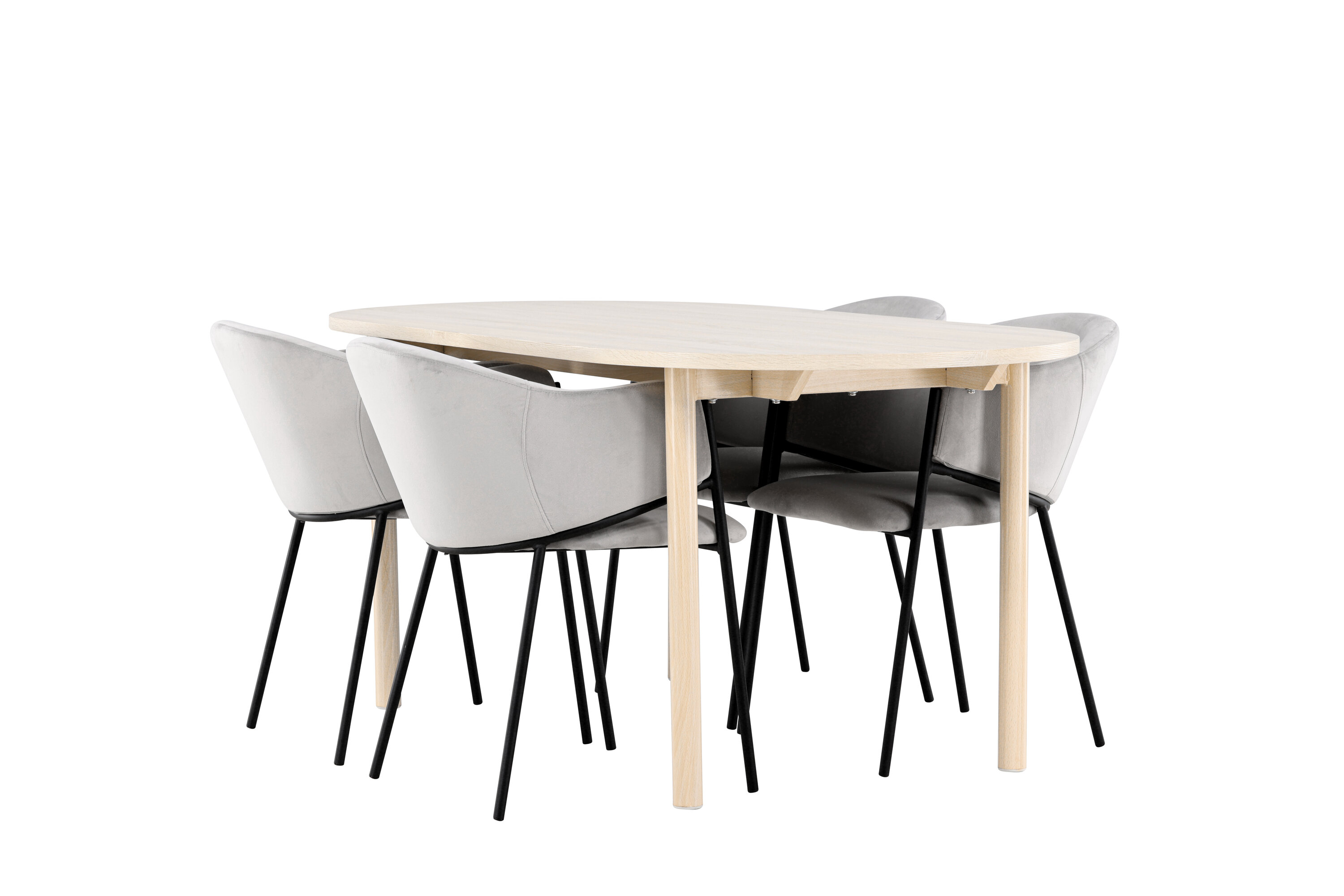 Ontdek de Andy eettafel en Evelina eetkamerstoelen - een perfecte eethoek die tijdloze elegantie en moderne stijl combineert. De Andy eettafel, met zijn witgekalkte kleur, geeft een aards en neutraal gevoel aan je eetkamer of keuken. De stalen poten en het MDF-tafelblad van de tafel combineren elegantie met duurzaamheid, waardoor het een betrouwbaar meubelstuk is voor vele jaren. Met royale afmetingen van 180x90 cm is er genoeg ruimte voor familie en vrienden om rond de tafel te komen en te genieten van lekker eten en goed gezelschap. Andy heeft een strak design dat perfect past in verschillende interieurstijlen en zorgt voor een rustige en ontspannen sfeer in de kamer. Of je het nu voor dagelijkse maaltijden of speciale gelegenheden gebruikt, Andy is een tijdloze en stijlvolle toevoeging aan je huis. De eetkamerstoel uit de Evelina serie heeft een nostalgische uitstraling, is zowel stijlvol als comfortabel en zorgt voor een luxe blikvanger rondom je eettafel! De stoel heeft een volledig gestoffeerde zitting met een afgeronde rugleuning in lichtgrijs fluweel en een decoratief, minimalistisch pootframe in zwart staal. Het trendveilige ontwerp maakt indruk en sluit perfect aan bij de trends. Ga comfortabel zitten en geniet van maaltijden in deze elegante eetkamerstoelen. Geef je interieur een vleugje eenvoudige elegantie met deze eetset bestaande uit de Andy eettafel en Evelina eetkamerstoelen - een must voor iedereen die zowel stijl als comfort in hun huis waardeert.