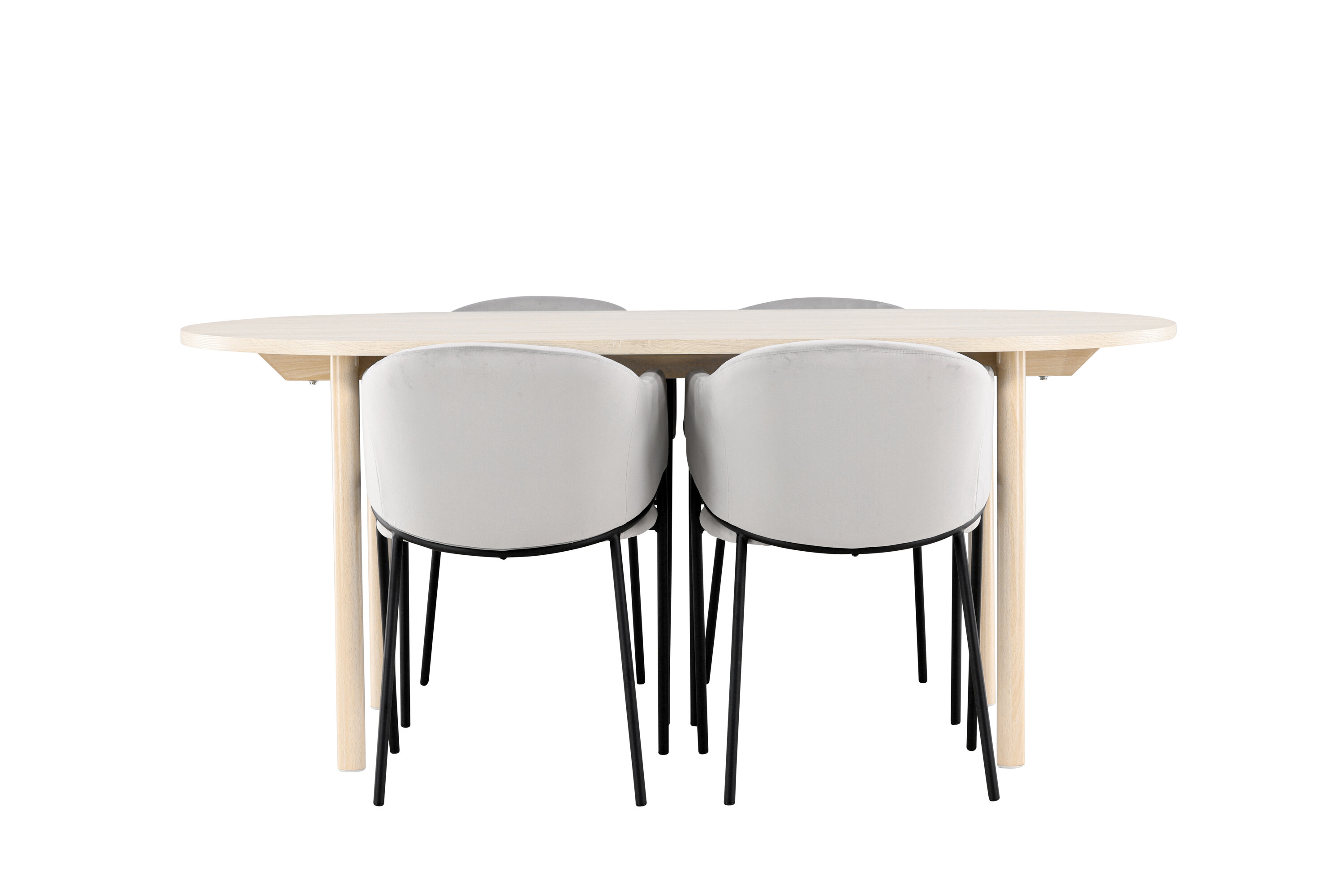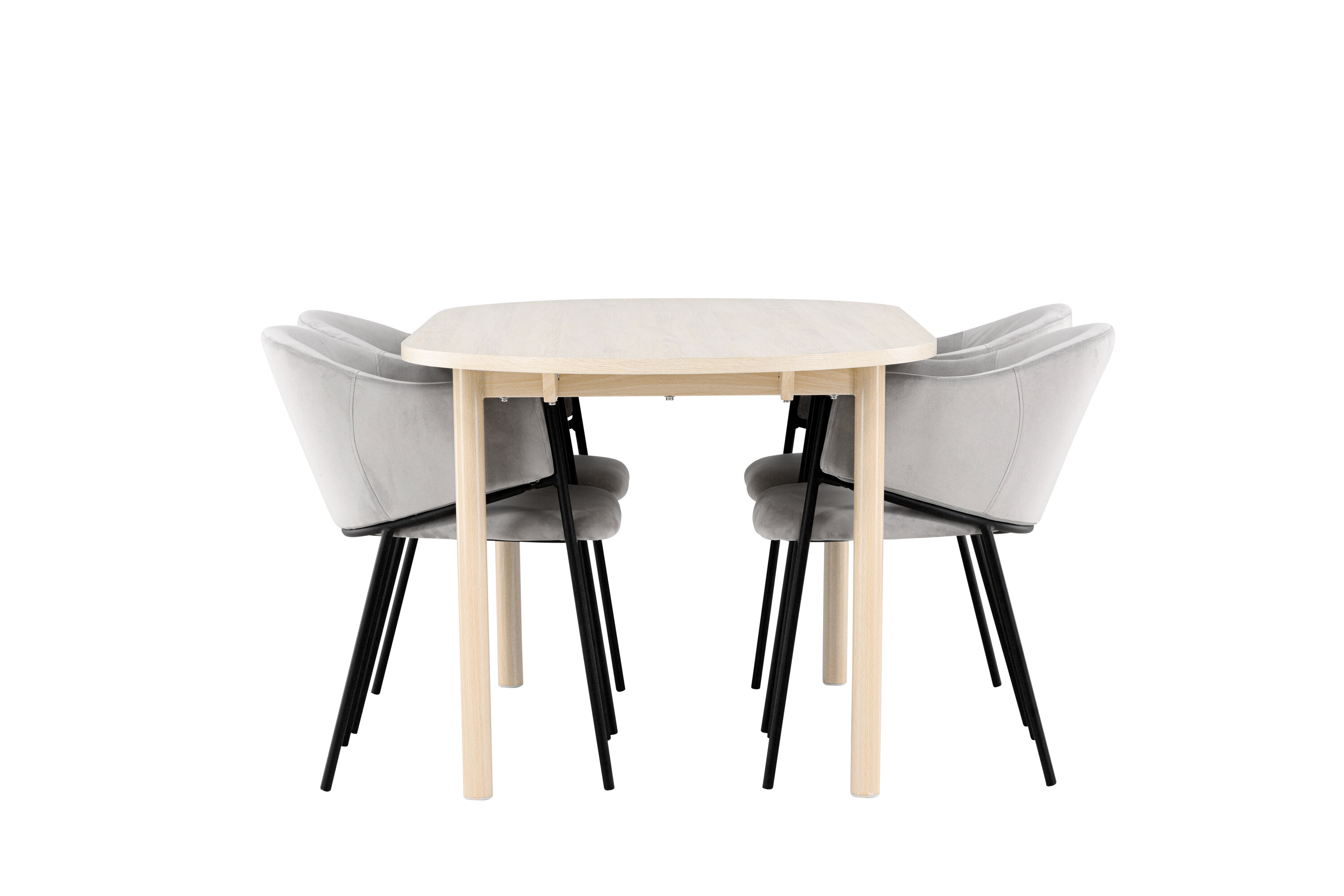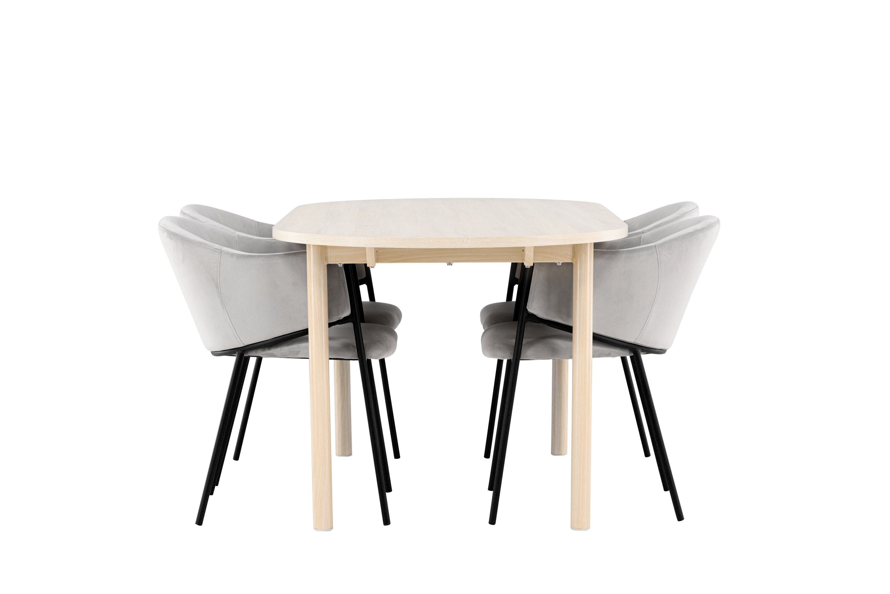 Ontdek de Andy eettafel en Evelina eetkamerstoelen - een perfecte eethoek die tijdloze elegantie en moderne stijl combineert. De Andy eettafel, met zijn witgekalkte kleur, geeft een aards en neutraal gevoel aan je eetkamer of keuken. De stalen poten en het MDF-tafelblad van de tafel combineren elegantie met duurzaamheid, waardoor het een betrouwbaar meubelstuk is voor vele jaren. Met royale afmetingen van 180x90 cm is er genoeg ruimte voor familie en vrienden om rond de tafel te komen en te genieten van lekker eten en goed gezelschap. Andy heeft een strak design dat perfect past in verschillende interieurstijlen en zorgt voor een rustige en ontspannen sfeer in de kamer. Of je het nu voor dagelijkse maaltijden of speciale gelegenheden gebruikt, Andy is een tijdloze en stijlvolle toevoeging aan je huis. De eetkamerstoel uit de Evelina serie heeft een nostalgische uitstraling, is zowel stijlvol als comfortabel en zorgt voor een luxe blikvanger rondom je eettafel! De stoel heeft een volledig gestoffeerde zitting met een afgeronde rugleuning in lichtgrijs fluweel en een decoratief, minimalistisch pootframe in zwart staal. Het trendveilige ontwerp maakt indruk en sluit perfect aan bij de trends. Ga comfortabel zitten en geniet van maaltijden in deze elegante eetkamerstoelen. Geef je interieur een vleugje eenvoudige elegantie met deze eetset bestaande uit de Andy eettafel en Evelina eetkamerstoelen - een must voor iedereen die zowel stijl als comfort in hun huis waardeert.