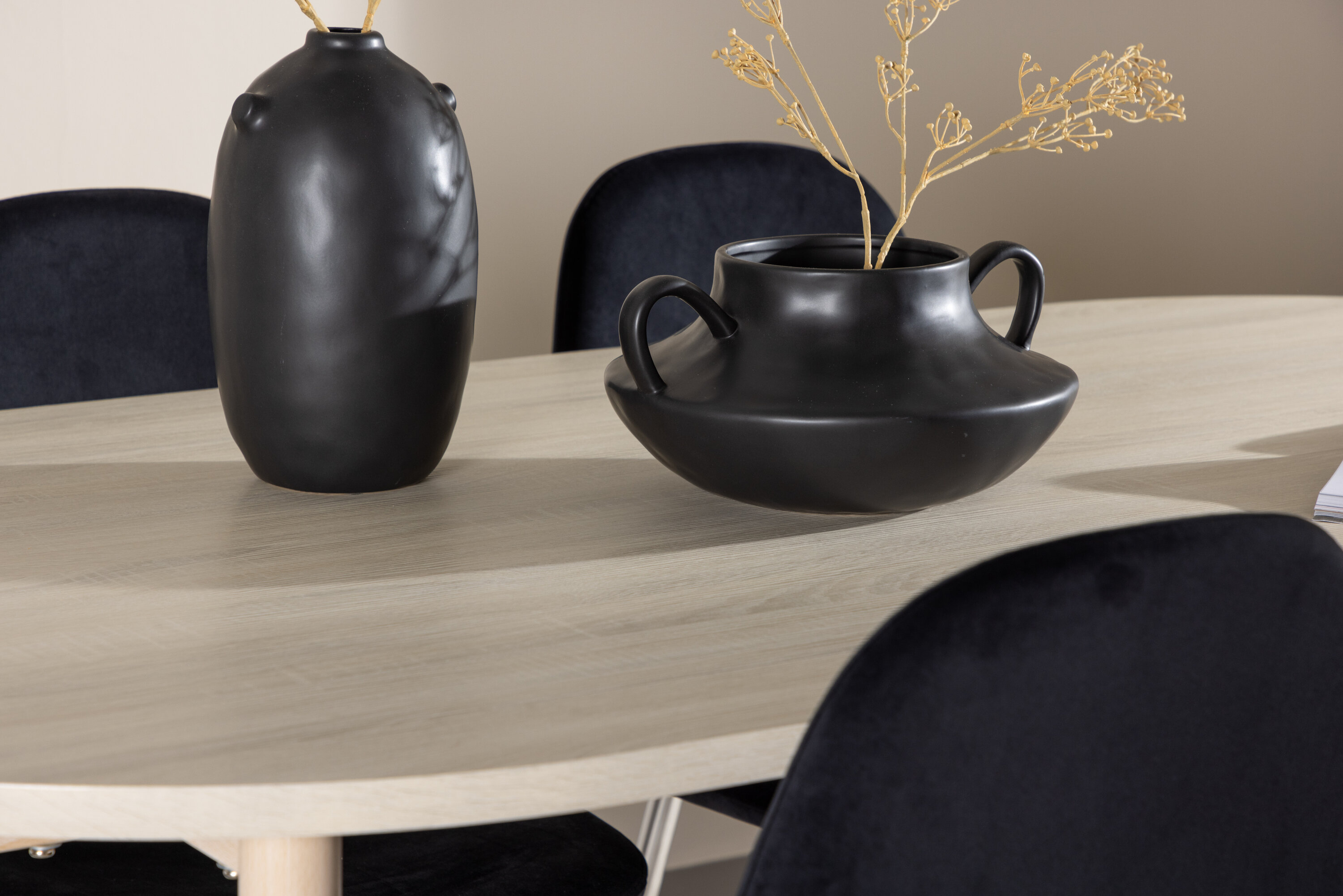 Een elegante eetkamerstoel in luxe stijl! Polar heeft een volledig gestoffeerd ontwerp met chroom metalen poten, een licht afgeronde rug en zitting in strak zwart fluweel met zachte vulling voor extra comfort. Hier hoef je geen compromis te sluiten tussen comfort en design. Combineer met een van onze stijlvolle eettafels en je hebt een complete eetgroep voor het hart van je huis! Ontdek Andy - de tijdloze eettafel die de perfecte plek wordt voor sociale maaltijden. Met zijn witgekalkte kleur geeft Andy een aards en neutraal gevoel aan je eetkamer of keuken. De stalen poten en het MDF-tafelblad combineren elegantie met robuustheid, waardoor het nog vele jaren een betrouwbaar meubelstuk is. Met royale afmetingen van 180x90 cm is er genoeg ruimte voor familie en vrienden om rond de tafel te komen en te genieten van lekker eten en goed gezelschap. Andy heeft een strak design dat perfect past in verschillende interieurstijlen en zorgt voor een rustige en ontspannen sfeer in de kamer. Of je het nu voor dagelijkse maaltijden of feestelijke gelegenheden gebruikt, Andy is een tijdloze en stijlvolle toevoeging aan je huis. Geef je interieur een vleugje eenvoudige elegantie met de Andy eettafel.