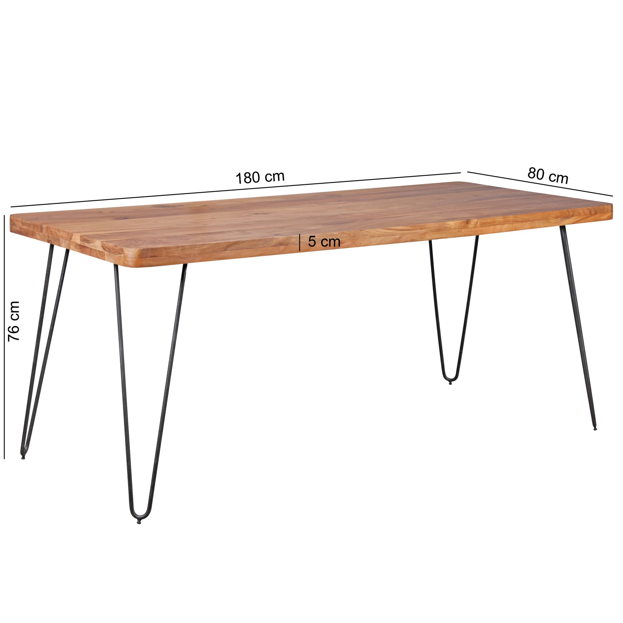 Massief houten eettafel acacia 180 cm eettafel houten tafel metal poten keukentafel landhaus donkerbruin