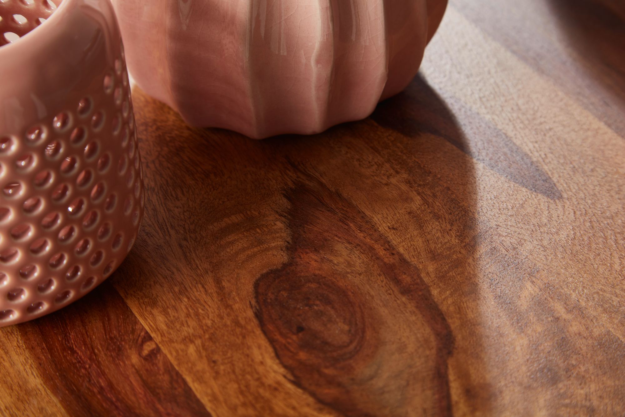 Deze set van 2 bijzettafels van massief Sheeshamhout combineert een rustieke landelijke stijl met een unieke houtnerf voor een warme uitstraling in uw woonruimte. Elk stuk wordt vakbekwaam met de hand gemaakt en beschermd met een laklaag. Tafels kunnen samen of los van elkaar gebruikt worden.