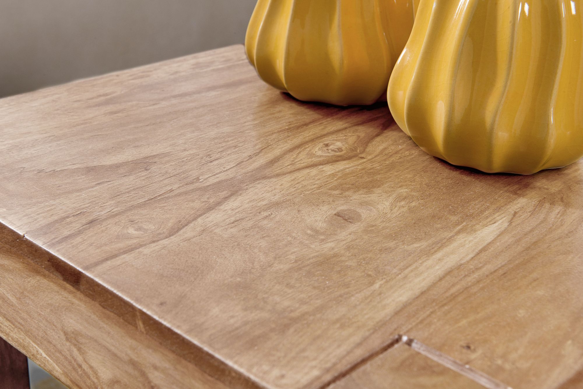 Deze set van 3 nesttafels van massief acaciahout is perfect om ruimte te besparen in uw woonkamer. De kleinere tafels kunnen onder de grotere worden geschoven en zijn ook afzonderlijk te gebruiken. Het natuurlijke hout met unieke nerf zorgt voor een rustieke en praktische uitstraling.