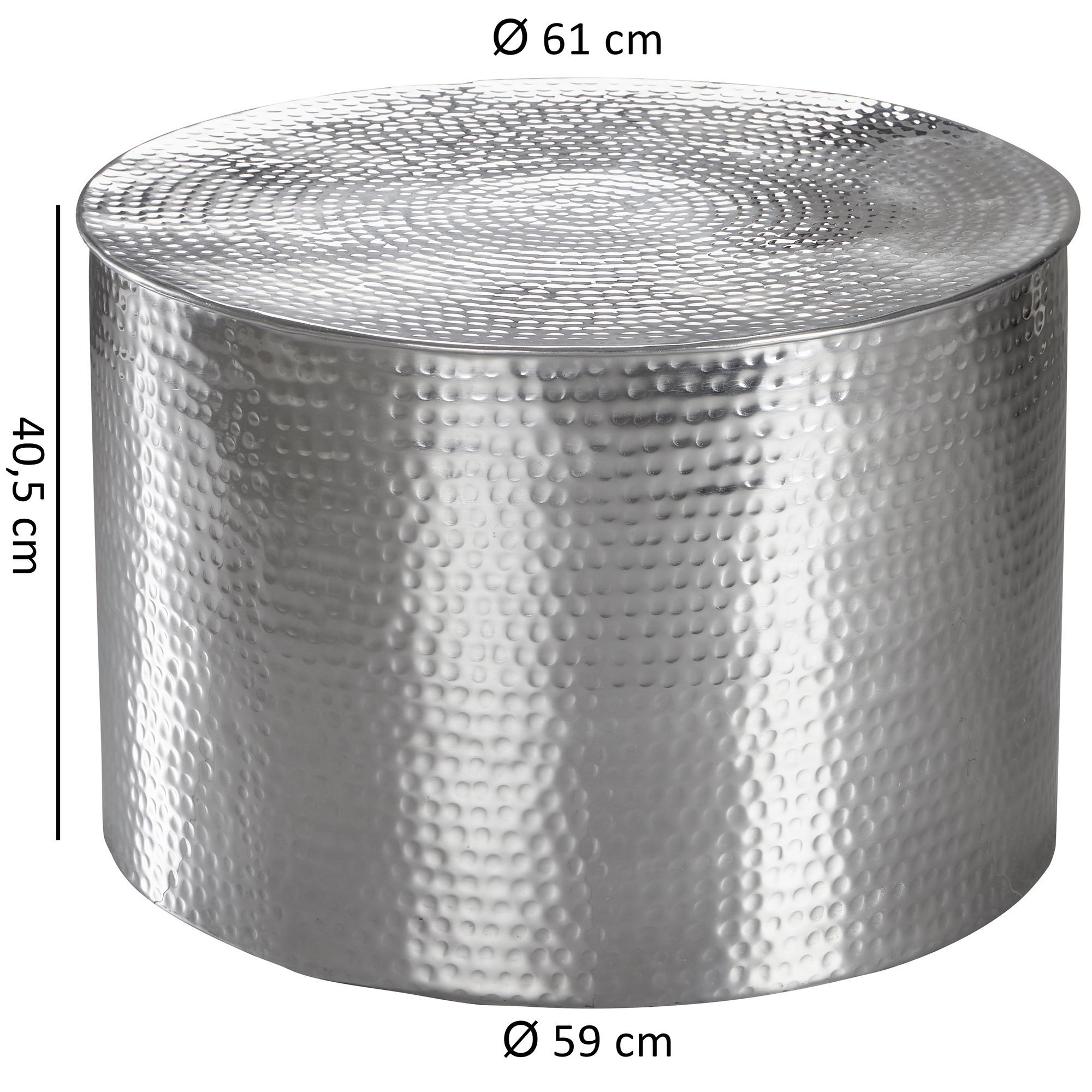 Breng een verfijnde uitstraling in uw woonkamer met deze zilverkleurige aluminium salontafel met geraffineerd oosters design. Het elegante hamerslagoppervlak trekt de aandacht en biedt duurzaamheid en moderne stijl.