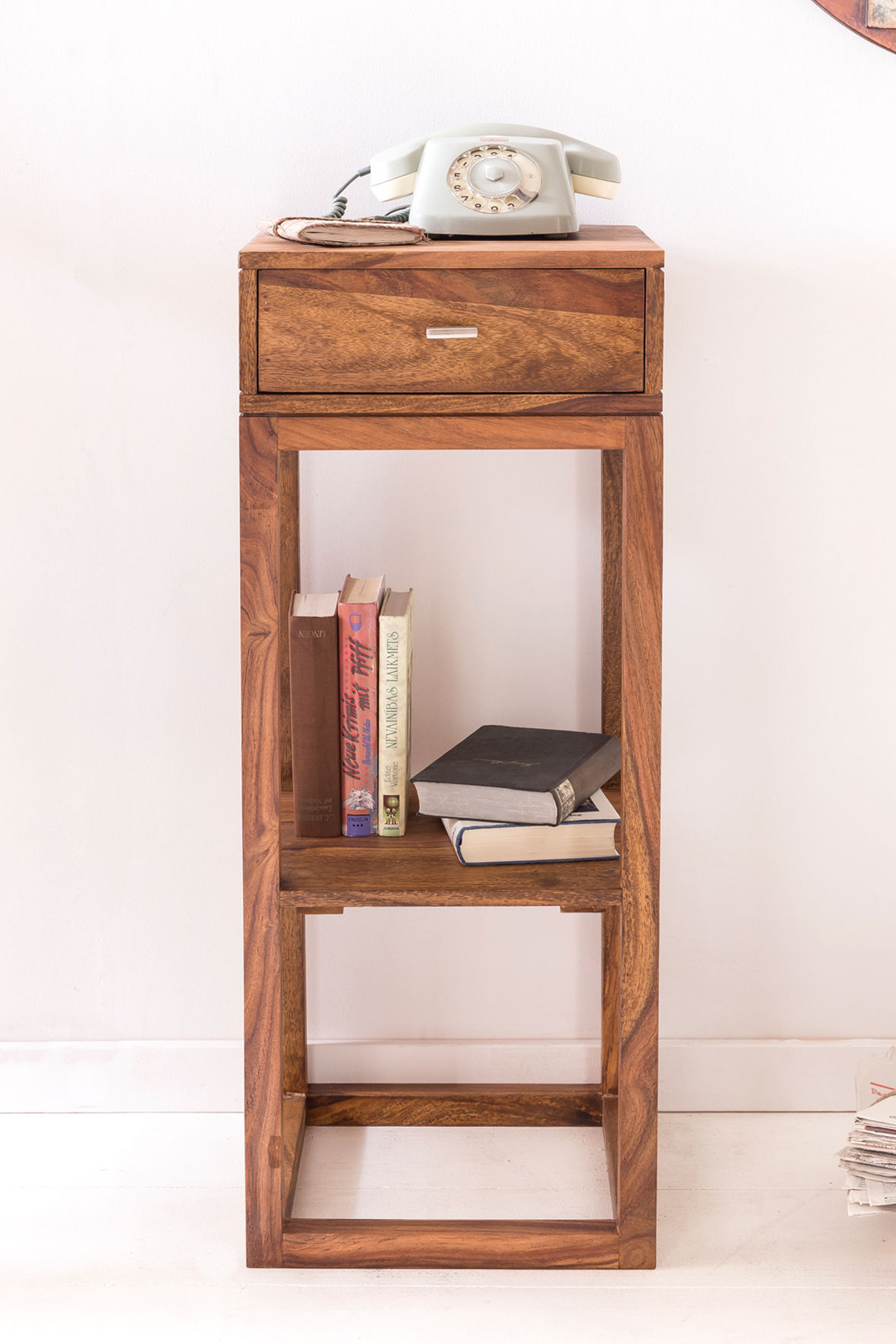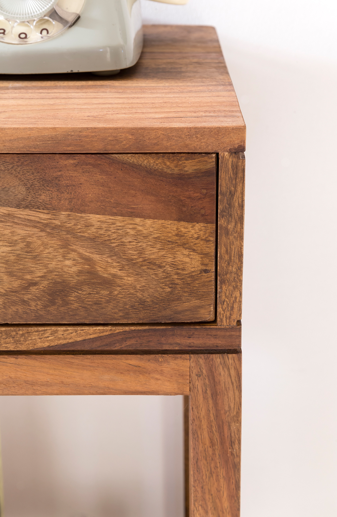 Bijzettafel MUMBAI Massief Sheeshamhout met lade | Kleur Sheesham met blanke lak | Afmetingen 90x35x35 cm