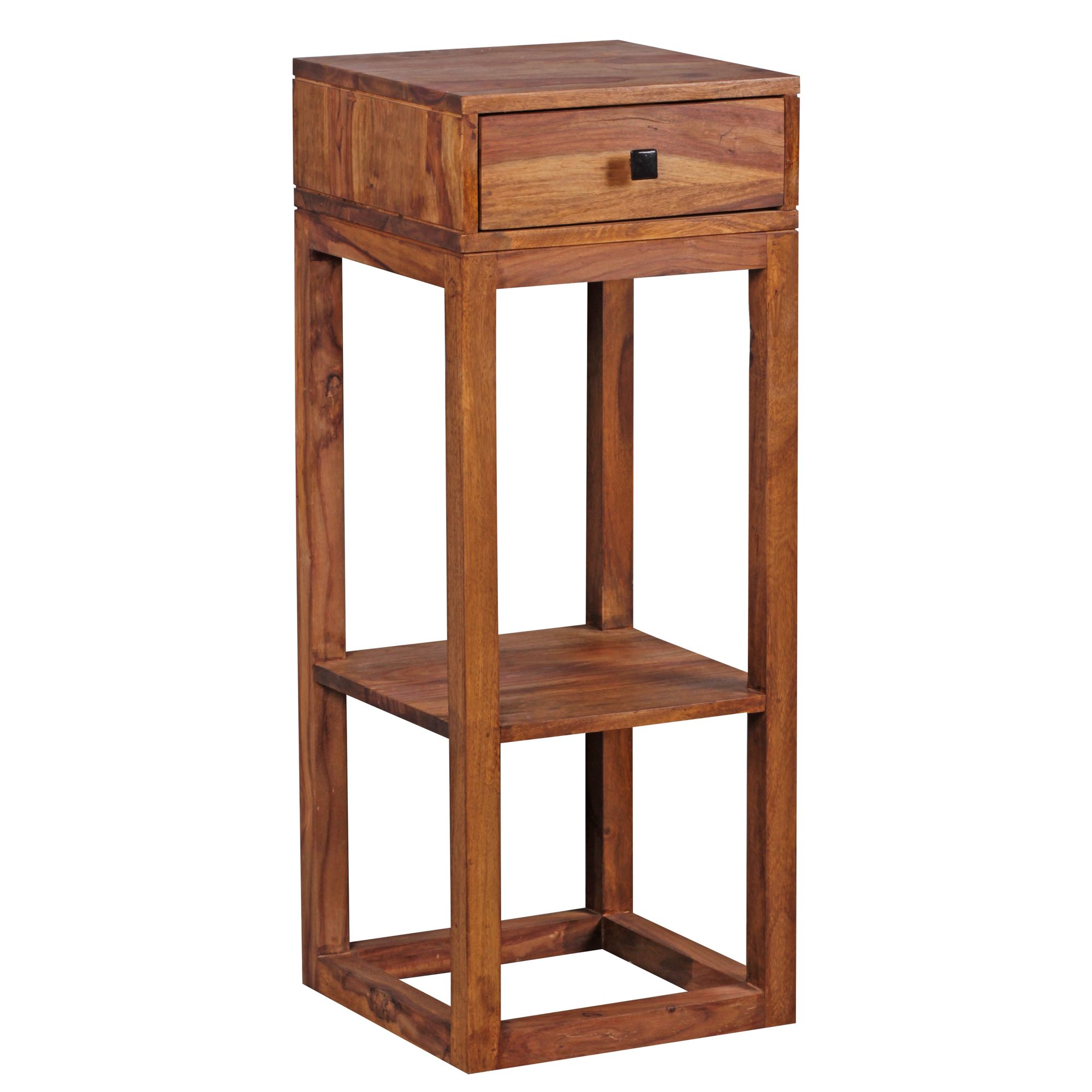 Productinformatie "Bijzettafel MUMBAI Massief Sheeshamhout met lade | Kleur Sheesham met blanke lak | Afmetingen 90x35x35 cm"