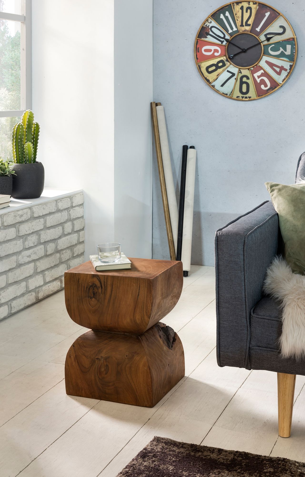 Breng warmte en authenticiteit in uw interieur met deze bijzettafel van massief Sheesham hout in bruin, met een rustiek ontwerp en afgeronde hoeken in zandloperstijl. Elk stuk is uniek dankzij de natuurlijke houtnerf en knoesten.