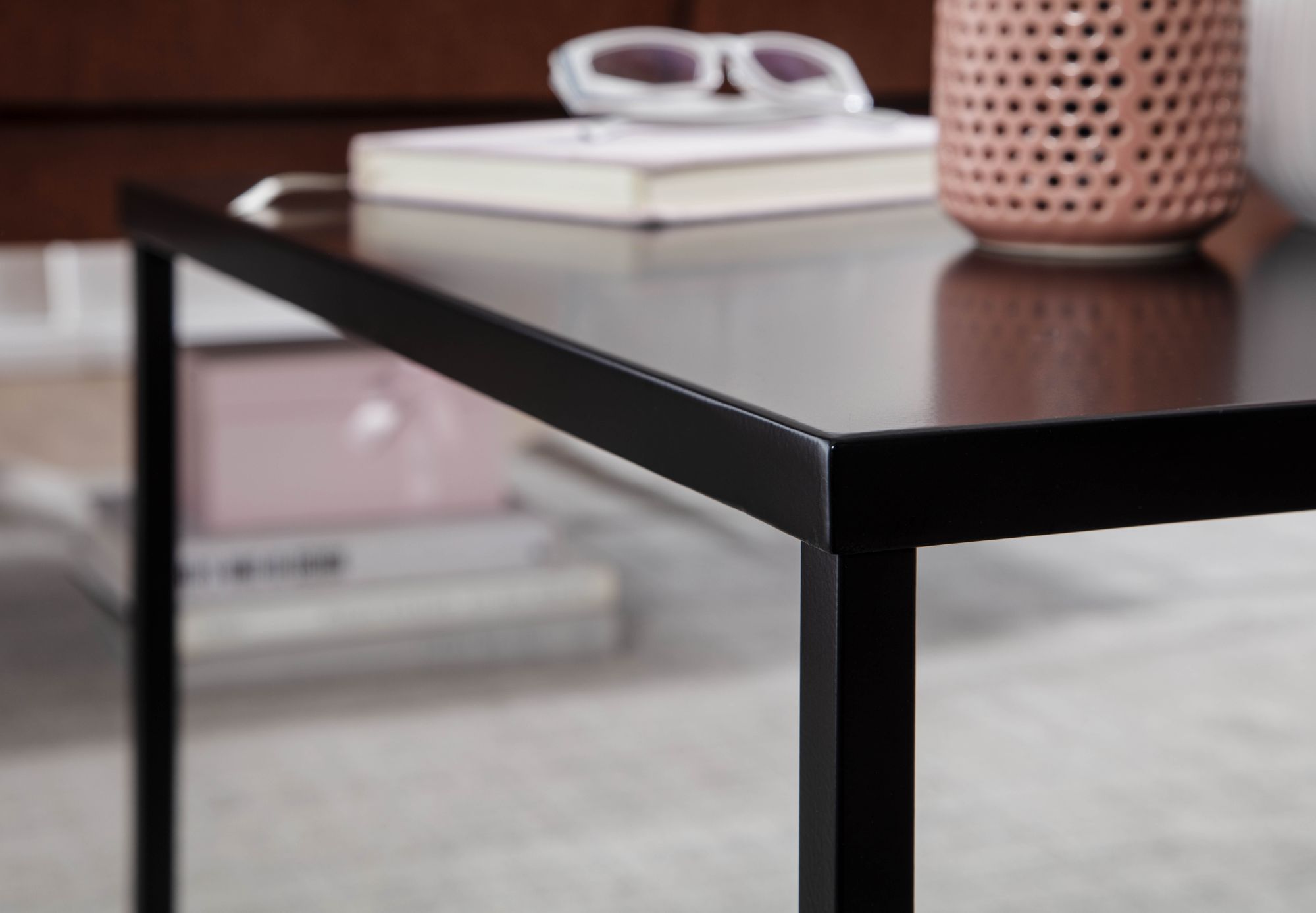 Omarm een chique industriële stijl met deze vierkante zwarte gelakte stalen salontafel. De duurzaamheid en strakke vormgeving maken het perfect voor dagelijks gebruik in uw woonkamer.