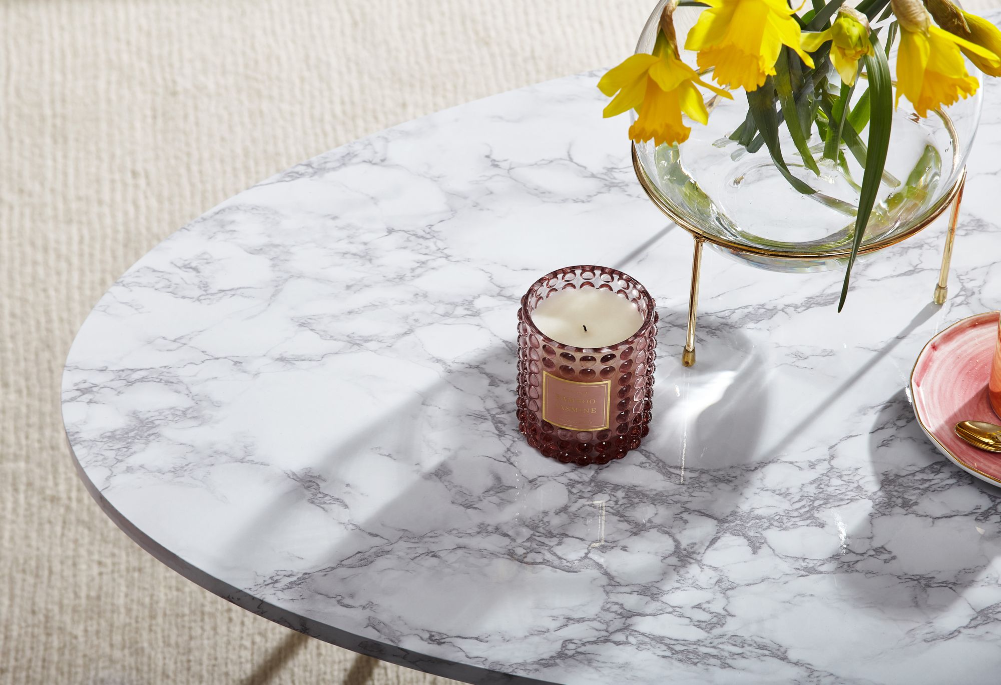 - Kleur: wit marmerlook blad, gouden poten