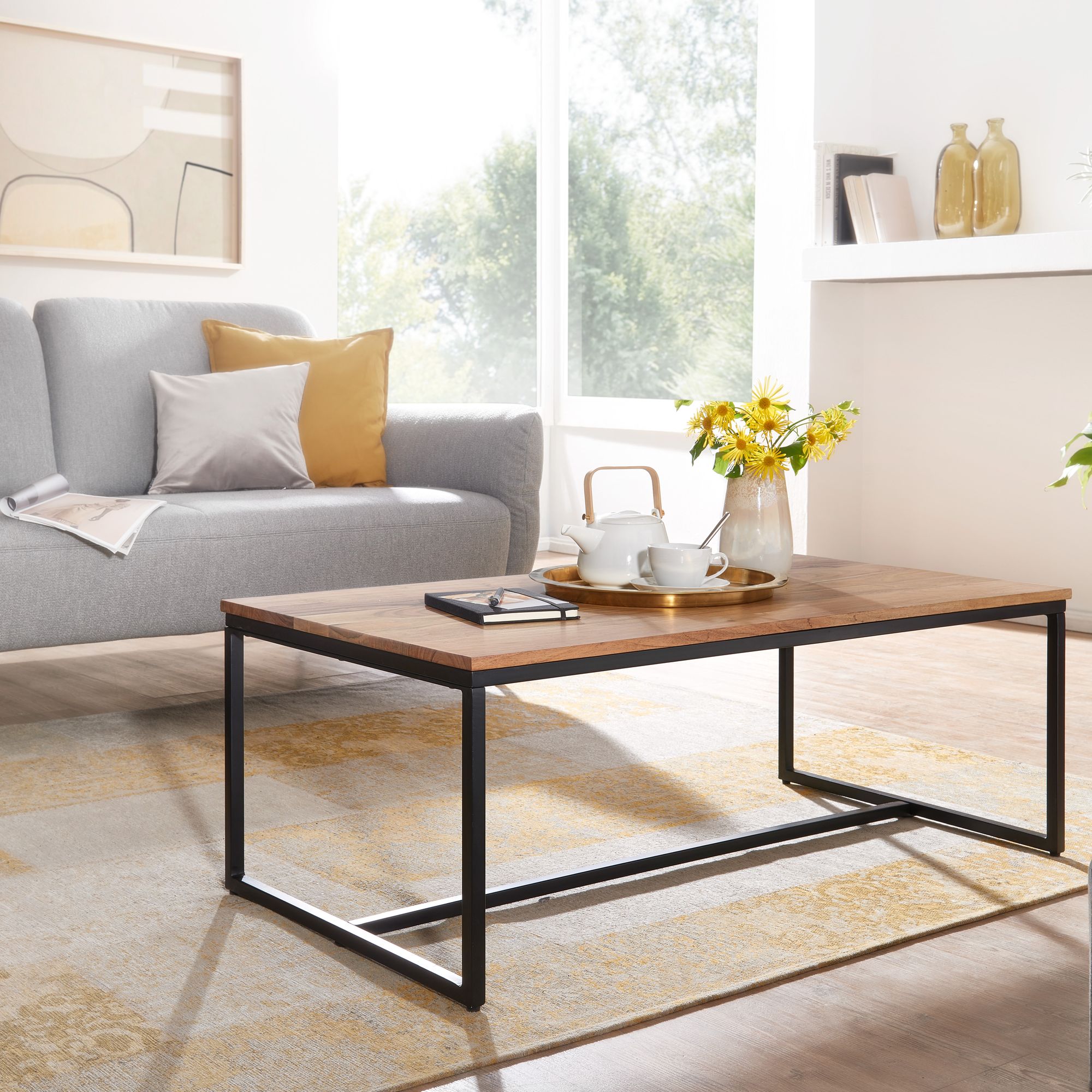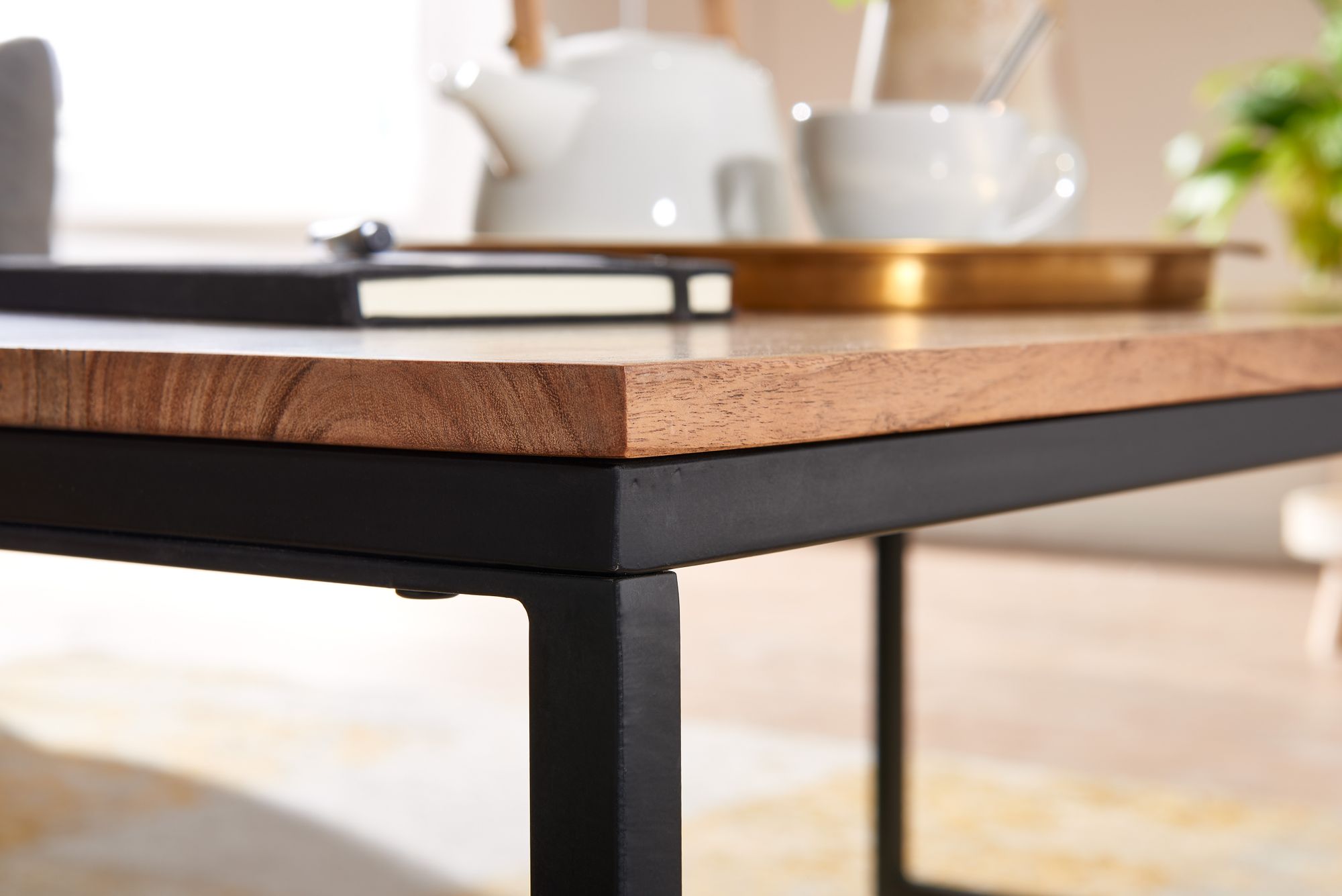 Productinformatie "Salontafel 110x60x40 cm massief houten metalen salontafel salontafel acacia"