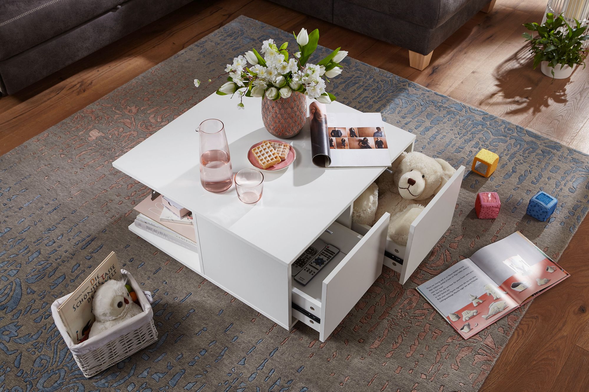 Salontafel 70x70 cm Wit | 2 lades & wielen | Moderne woonkamer tafel