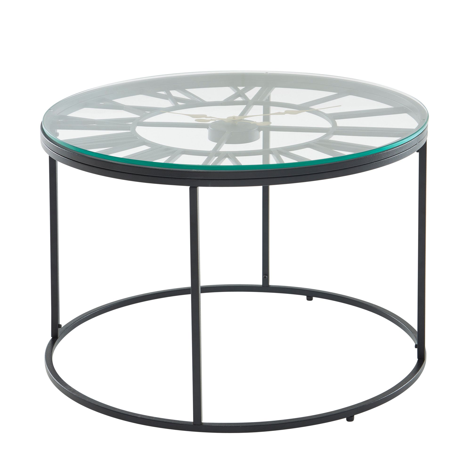 Salontafel Glas Metaal Zwart 60x60x43 cm | Moderne Ronde Woonkamertafel met Decoratieve Klok