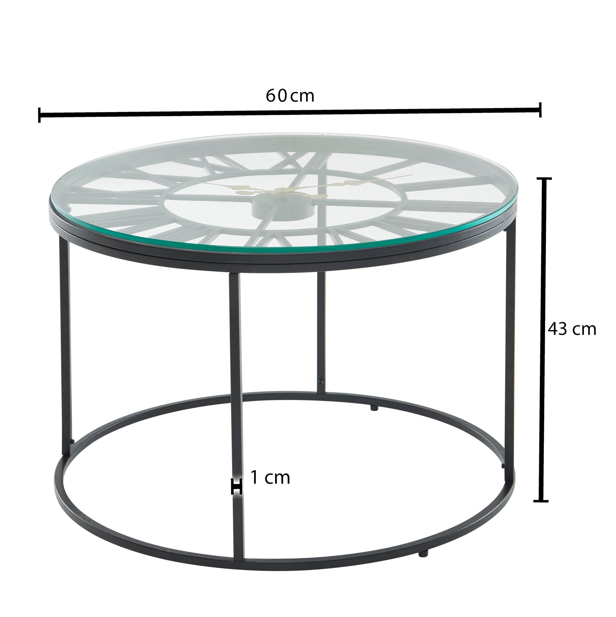 Productinformatie "Salontafel Glas Metaal Zwart 60x60x43 cm | Moderne Ronde Woonkamertafel met Decoratieve Klok"